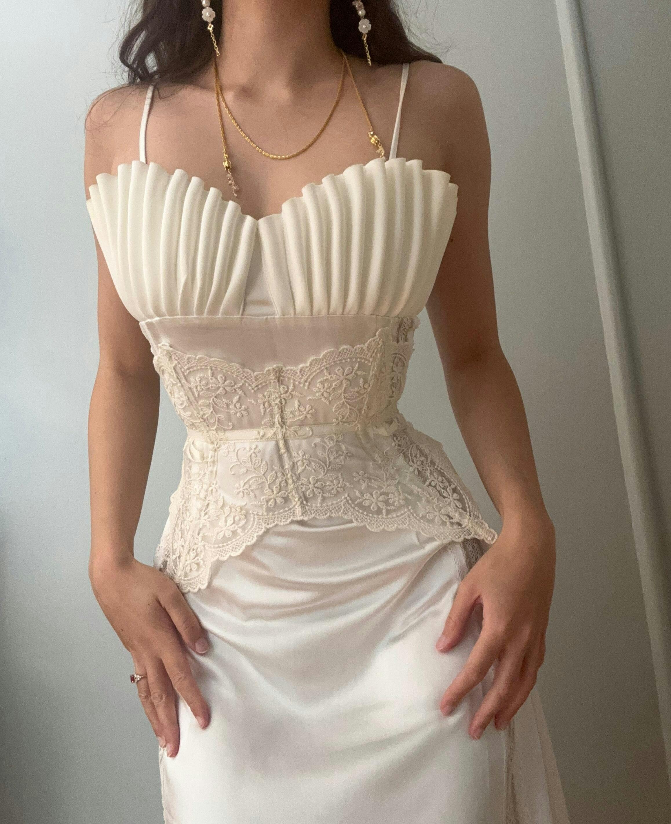 Such a good corset!! I find that many of the Lacemade corsets run a bit big so they don’t give you that cinching effect but this one is perfect. You can tighten it as much as you like. It’s good quality and goes with so many dresses.