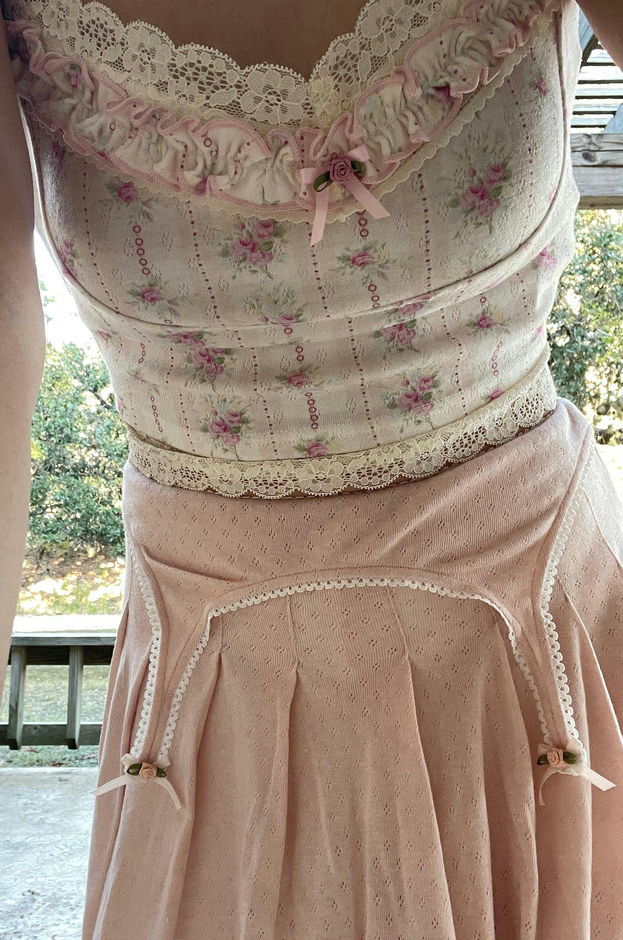 The material is thick and soft. The ruffled details are well done. The lace is soft and not itchy. The bust area is acceptable: I am a 36 bust and 28 waist with a long torso and the adjustable straps allow this to fit fine as a size Large. I might have wanted the bust seam to be a tad wider but whatever, this should look good on most people. My one big complaint though is the vertical lines in the pattern of the fabric aren't lined up in the front. Disappointing, with all the extra details in this brand's clothes and with how it is pictured in the display photo. Really cheapens what could have been a seriously nice and structured looking tank top.