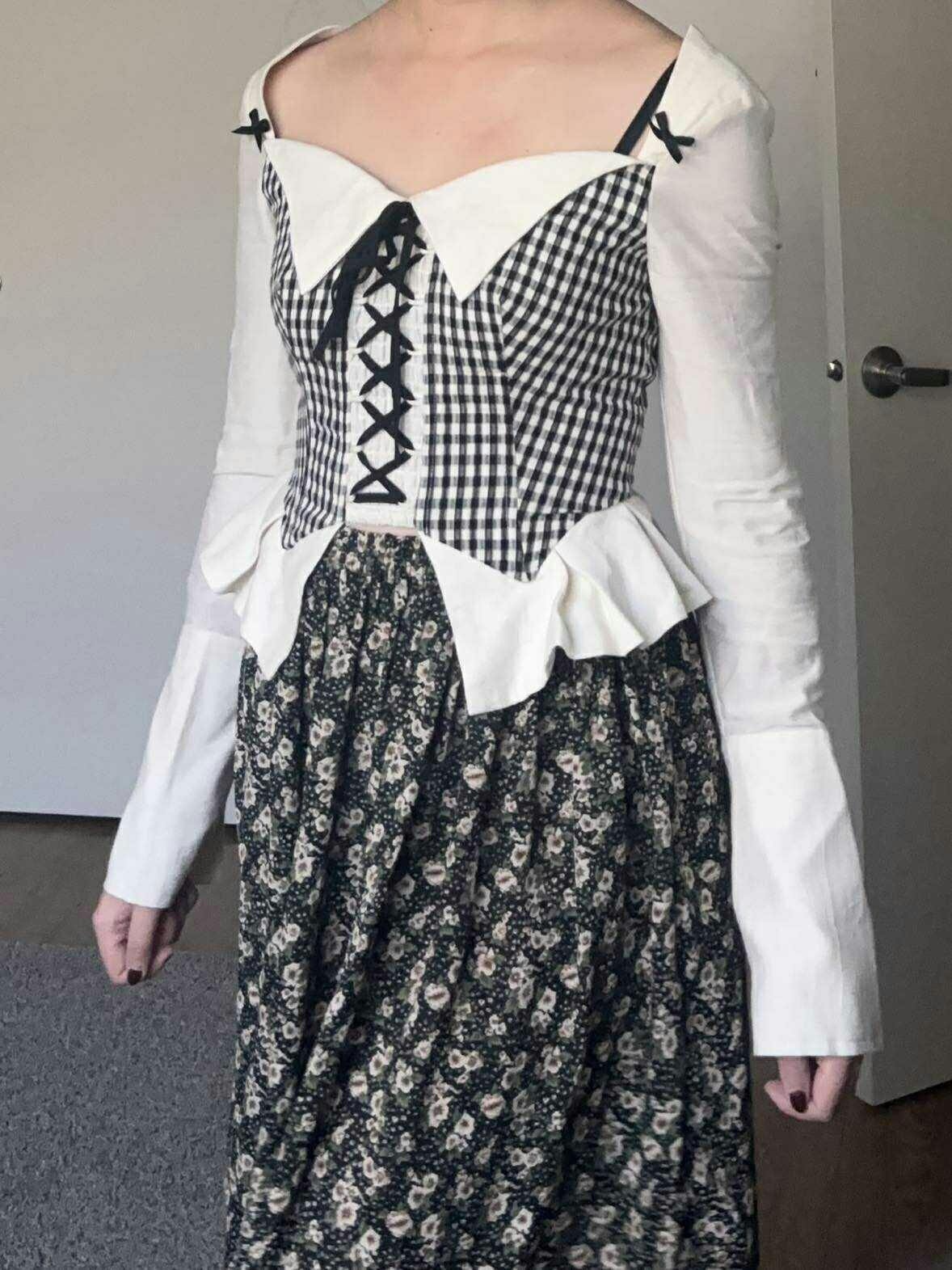 Prepared to be stared a lot as you walk by. It’s a beautiful corset with lots of beautiful details. It is more like an off-white/beige color so take that into consideration. Overall it’s true to size, I’m an EU 38/40 and I ordered it XL. I must say I cannot wear it the whole day since it is a bit tight. Also the arm area it’s really restricting. You cannot lift your arms up! It’s a statement piece of clothing and it’s worth the money in my opinion.