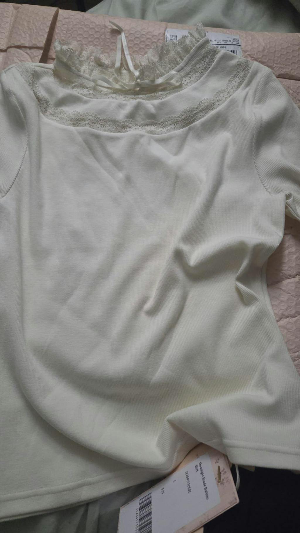 Very beautiful, love it. Elegant, simple, stretchy, and not too heavy. Love the lace and ribbon at the neck. As always, beautiful packaging.