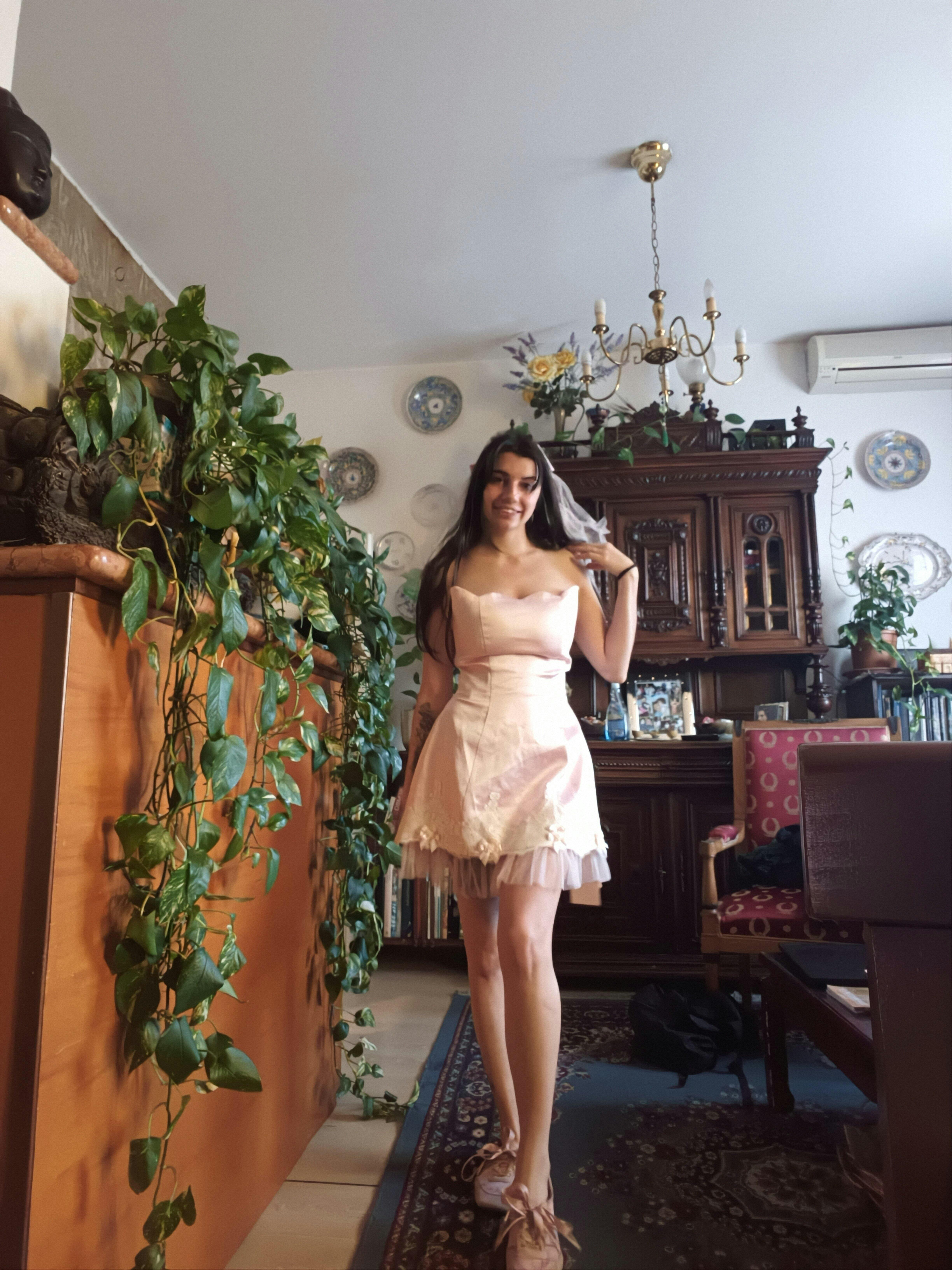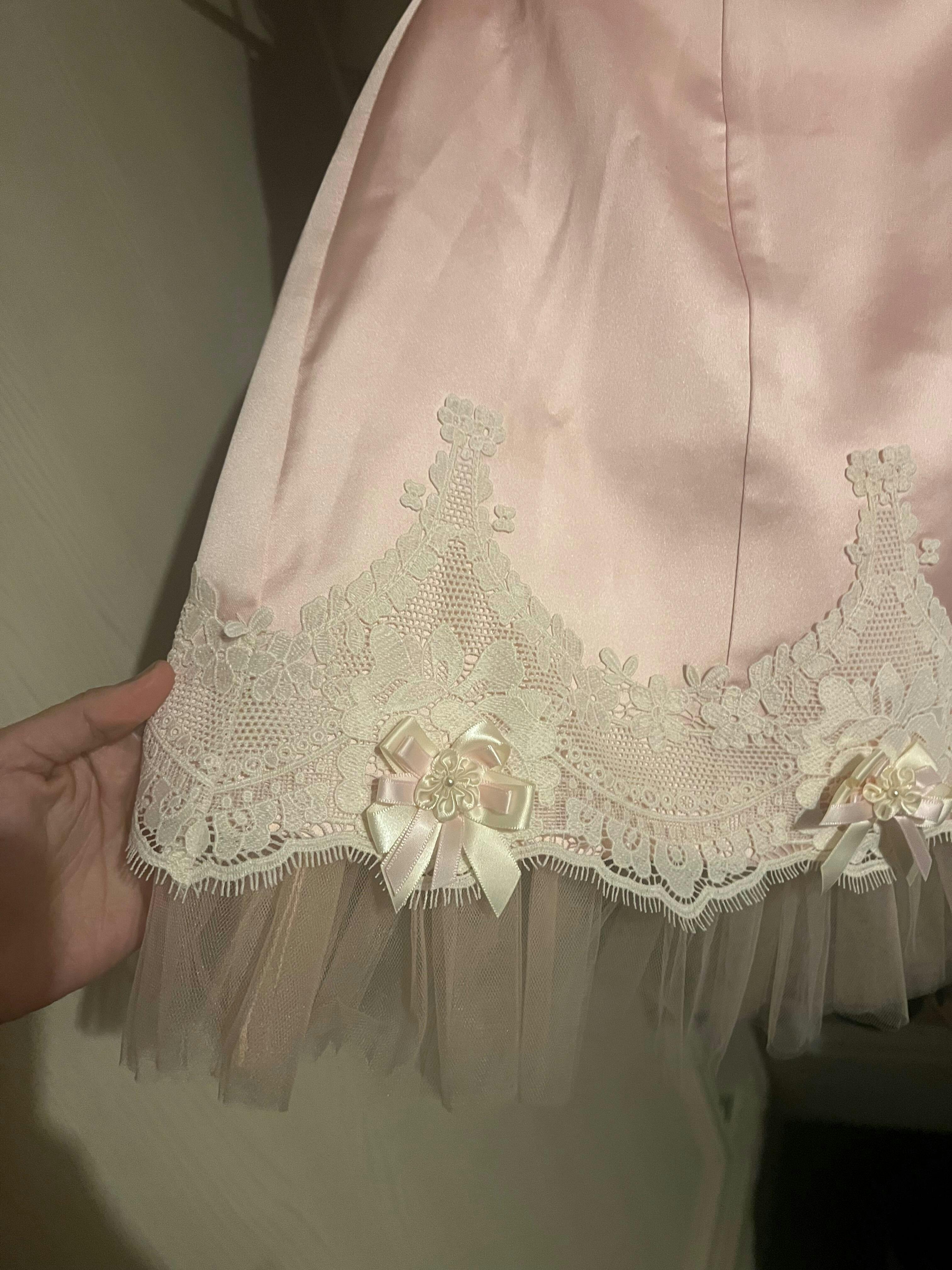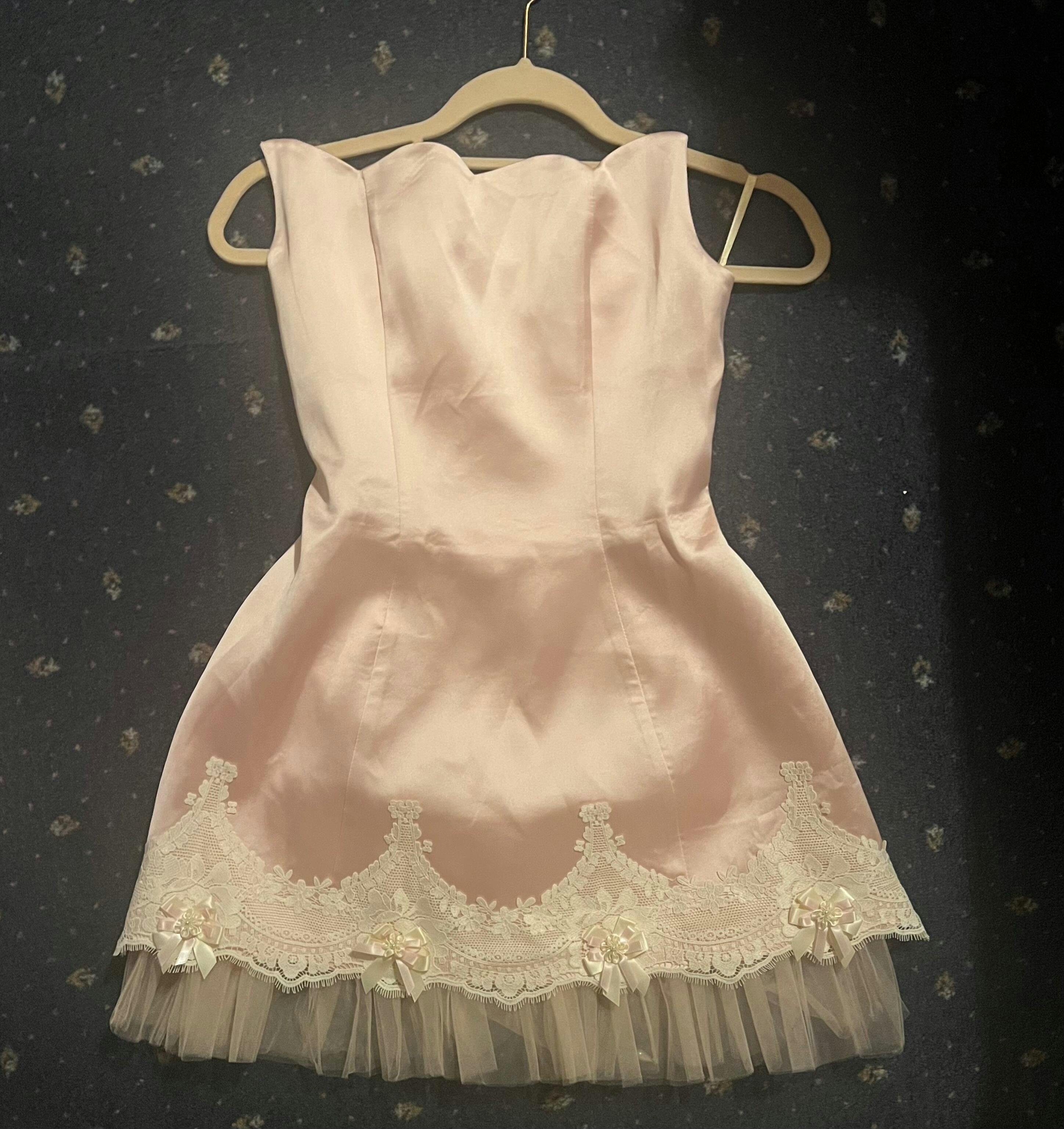 It's so cute and beautiful! I love the shape, the material, the fit! It's just lovely. The bow is with the dress