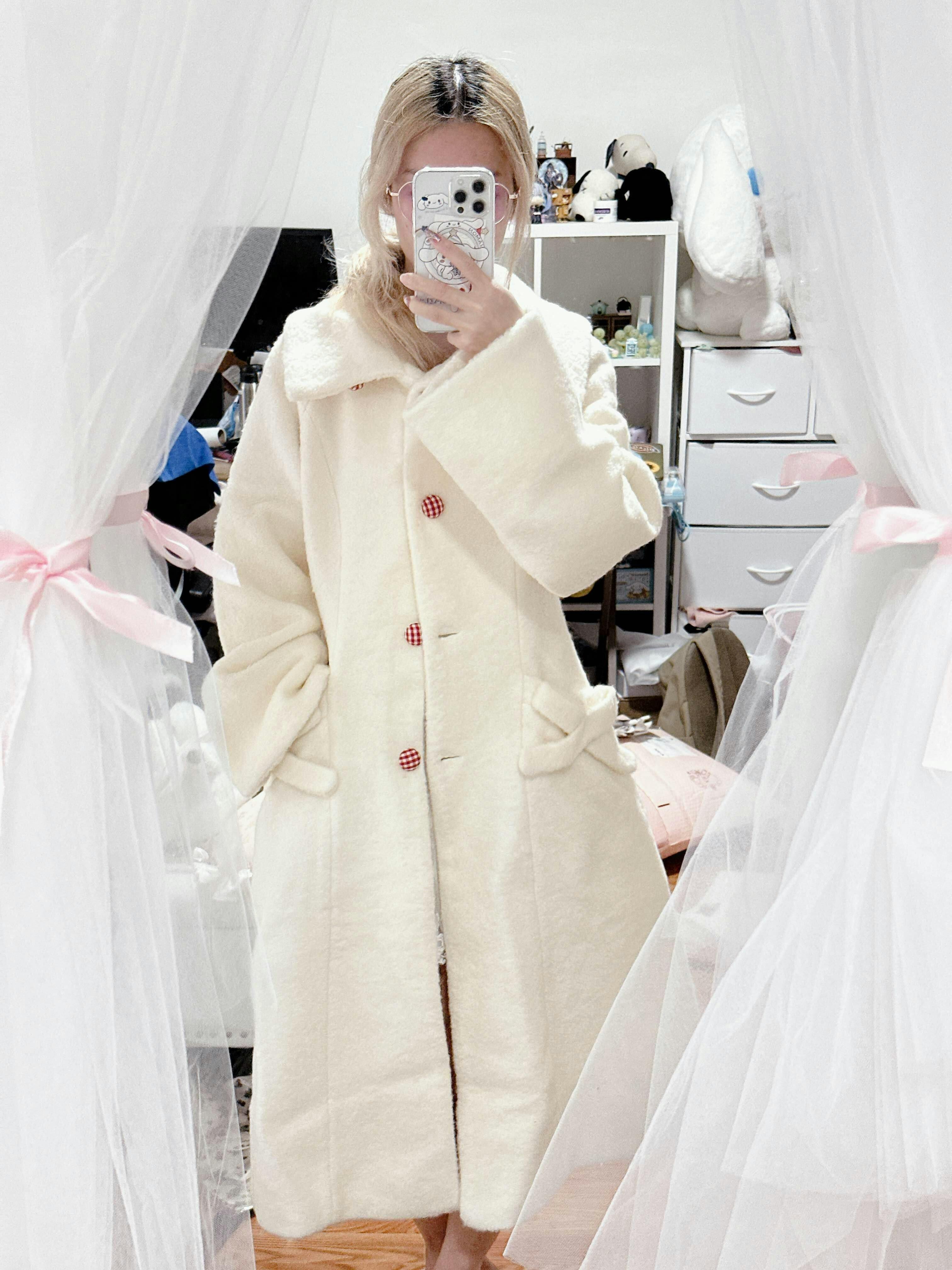 i picked the white one size L since i dont have any white winter coats! This is perfect if you want a princessy coat that you can pair with some pretty dresses or skirts. I'm normally XL in lacemade but this coat runs a little big and I was able to fit into the L and also button up. I am 173cm or about 5'8" and the length is perfect on me. It's not too short or long. If it's cold out, I definitely recommend layering up. I wore a corset + thin cardigan with this coat when it was windy at night and I was not warm enough. I highly recommend getting it!