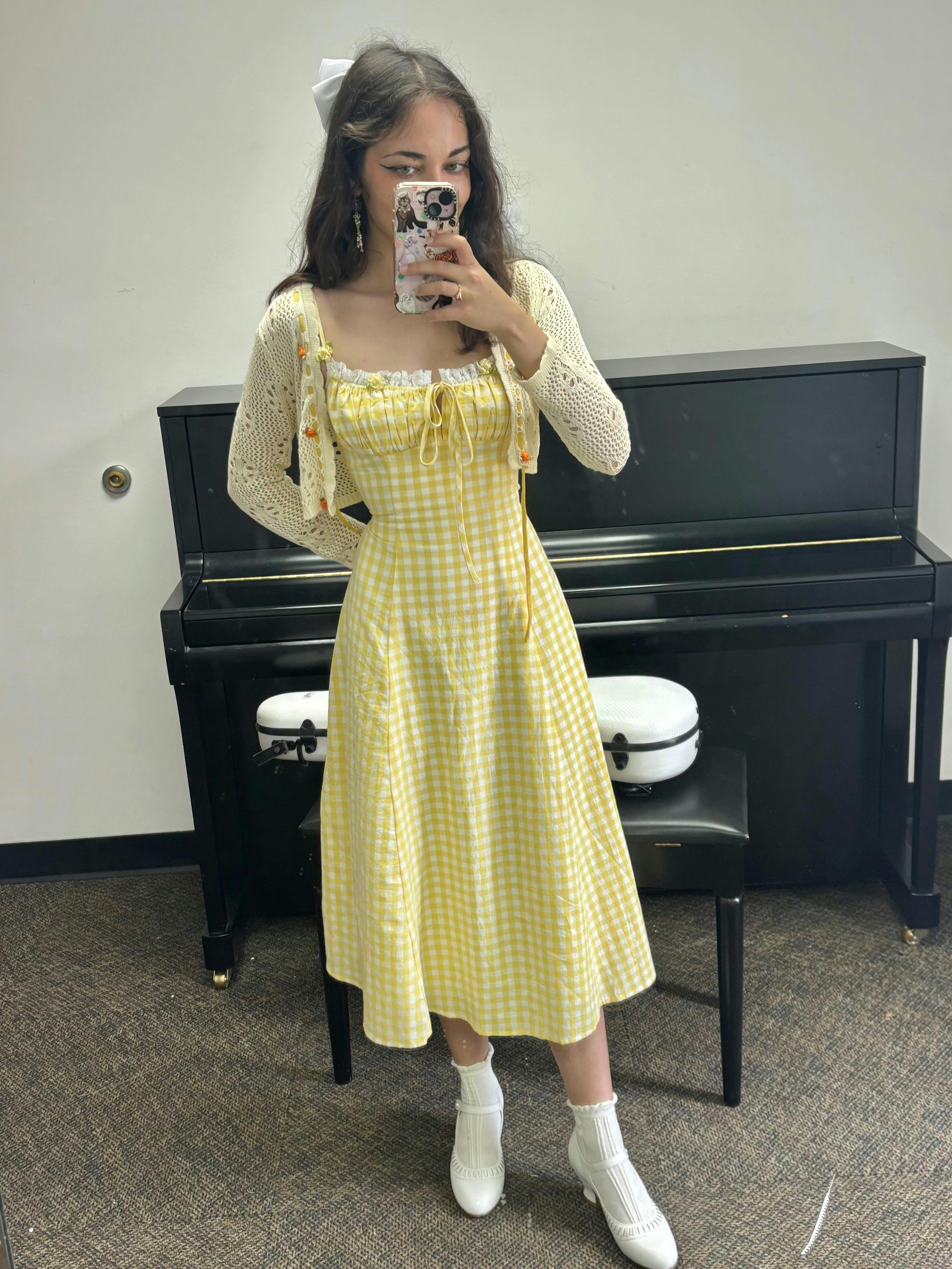 Simple, but beautiful and perfect shape! I did not know that yellow was my color before I got this dress. Now I feel like I would wear it every day!