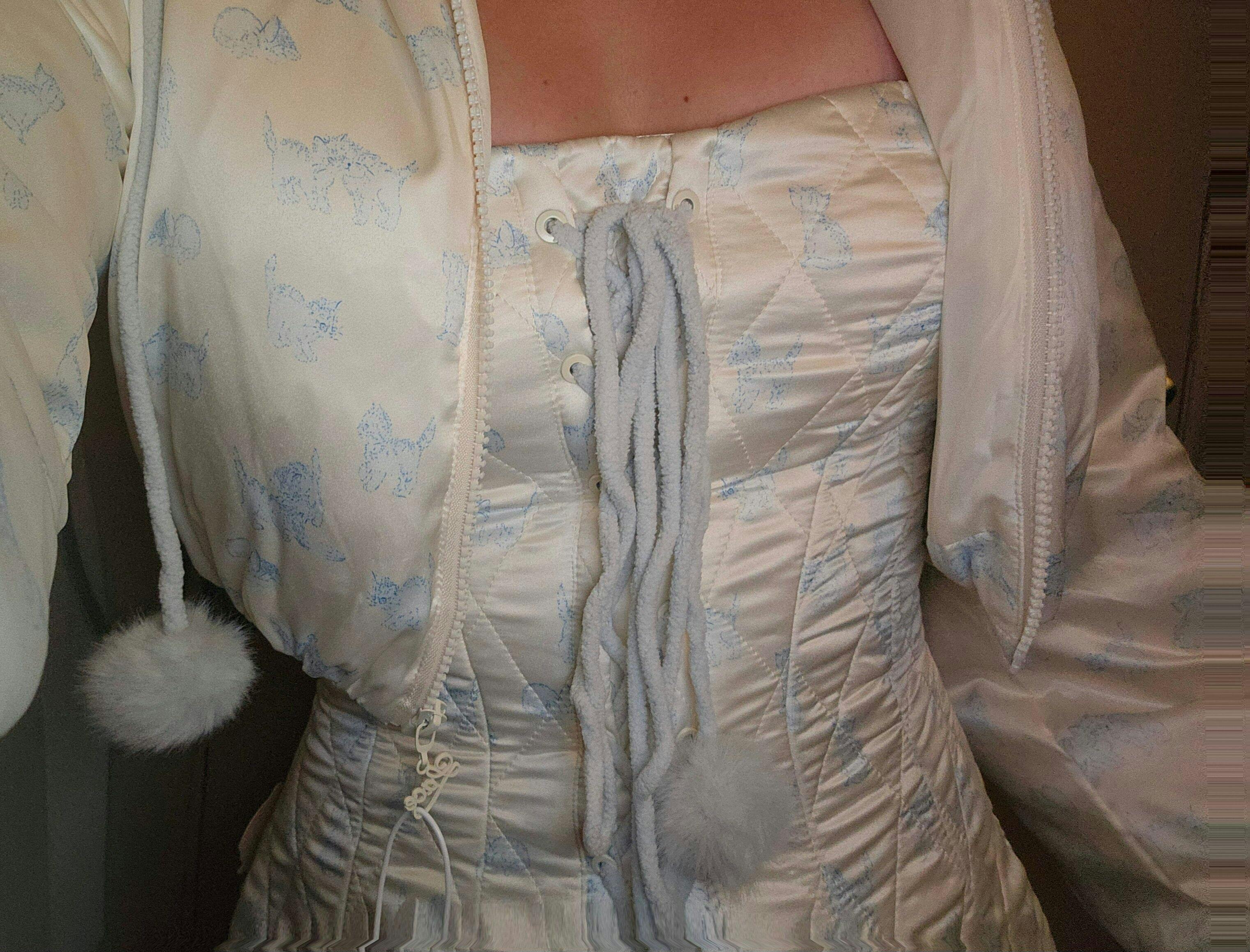 I regretted not buying it last December. The main reason I wanted to buy it - the cute blue cats. Really the most adorable materiel ever! I think the dress is impressive together with the jacket so I recommend it as a set. It is very ajustable with the corset in the front.