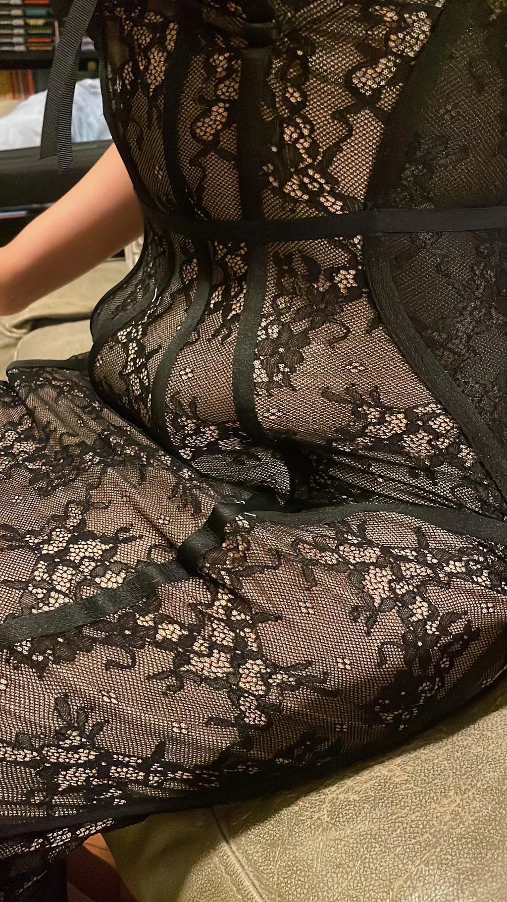 The dress is beautiful and good quality. Very comfortable and stretchable, BUT when sitting normally the wires become messy as shown on the pictures, it forms like a bubble of space, making it look like fat. I stretched the fabric to avoid it but it then becomes pointy and kind of uncomfortable at the end of the wire