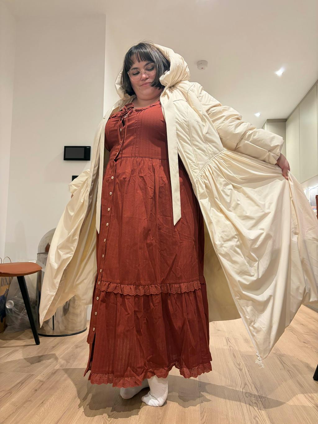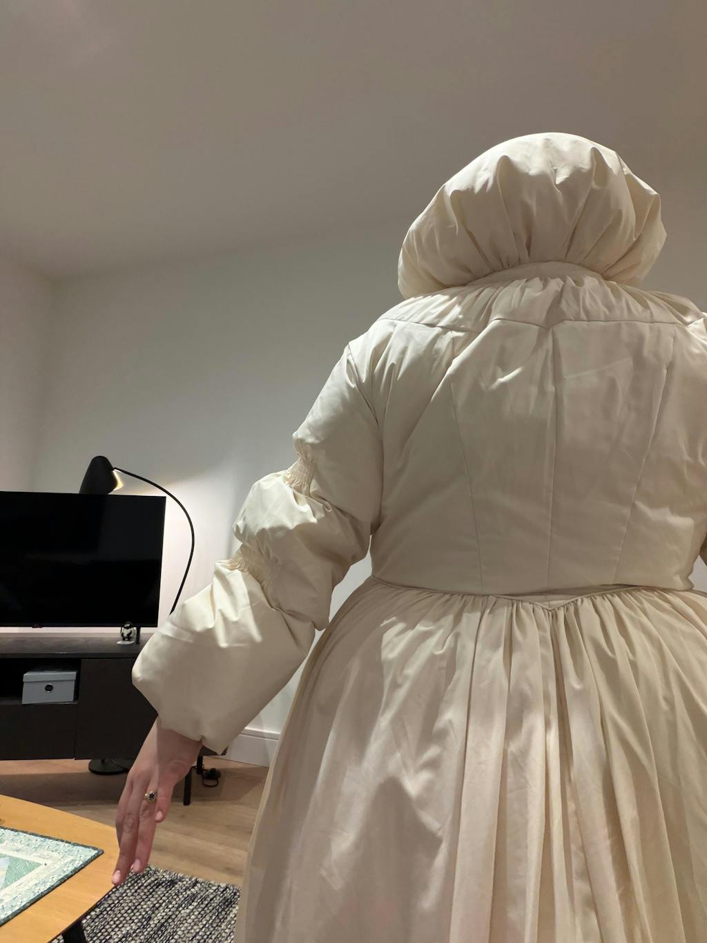 My only note is the zipper sometimes gets caught on the fabric but it’s to get expected on a coat that has a duvet like style. It’s honestly like a princess gown had a baby with a duvet.
