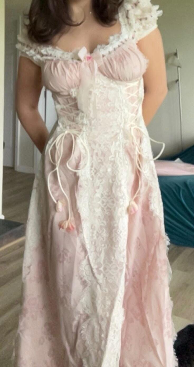 This dress is so gorgeous! I love the cut of it, as it differs from other lacemade dresses I have! It lands somewhere between and a-line and a tighter bodycon. The sleeves are sort of itchy, so if you have sensory issues, you may want to pass on this one. It will make a perfect piece for late spring!💗🫶