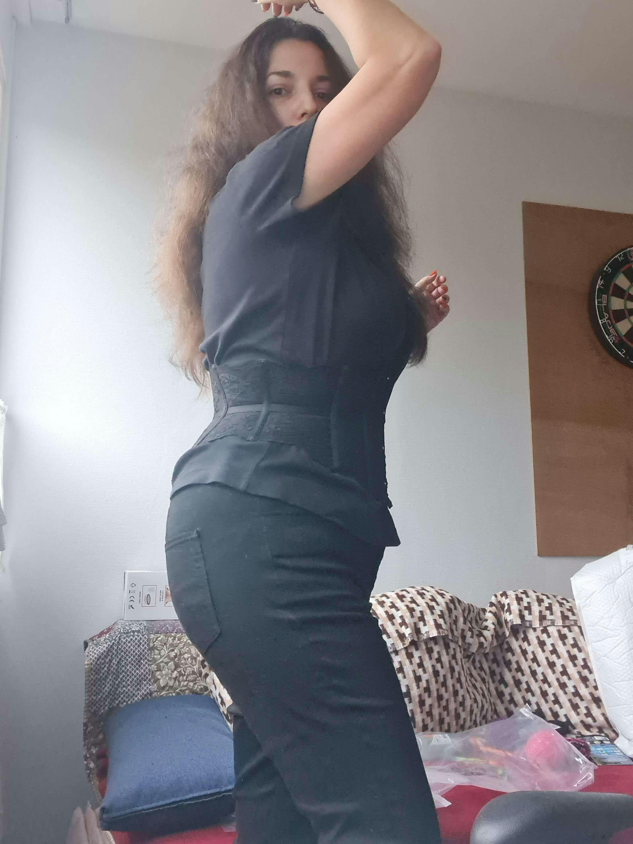 I simply love it! It is flattering, it is comfortable, it is a little elastic. I didn't even lace it as tight as i could have simply because I didn't want to make the effort, and it still cinched my waist. Best to size down for this one. I recommend it!