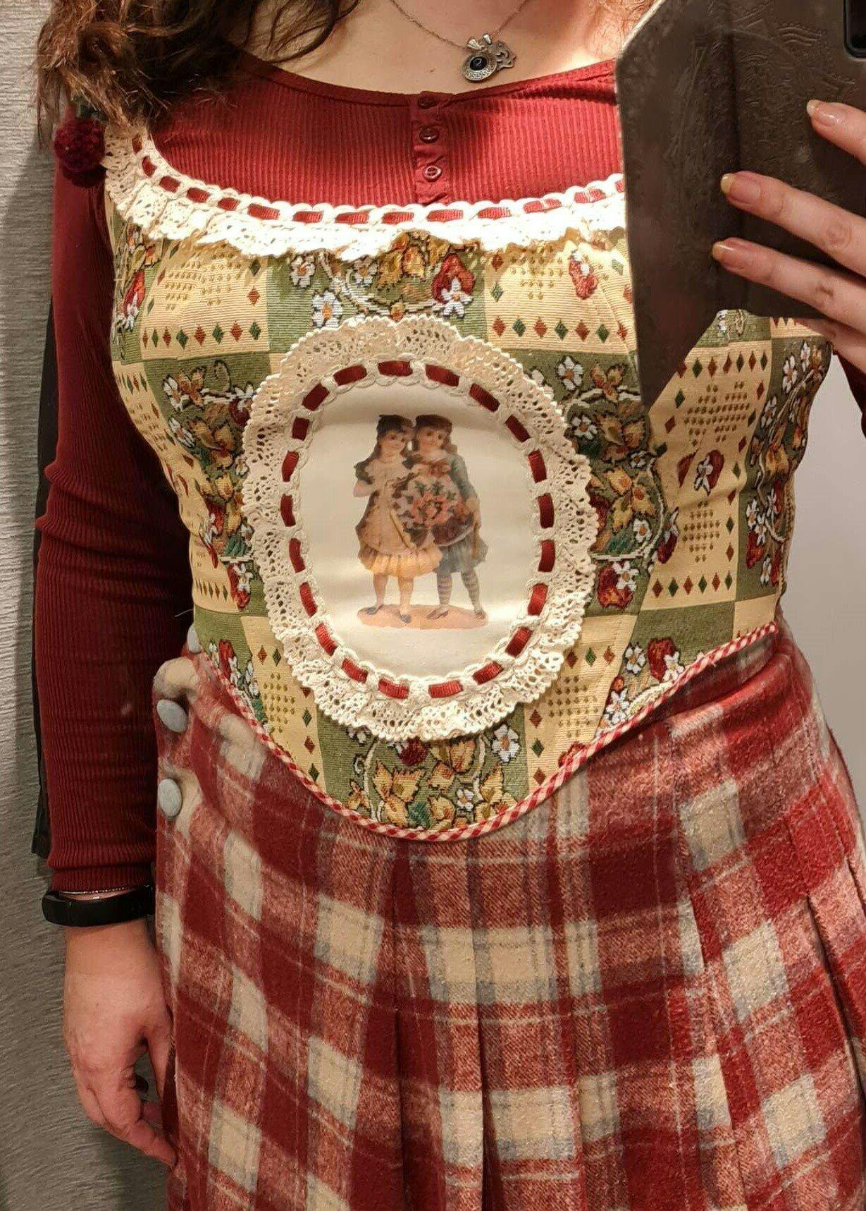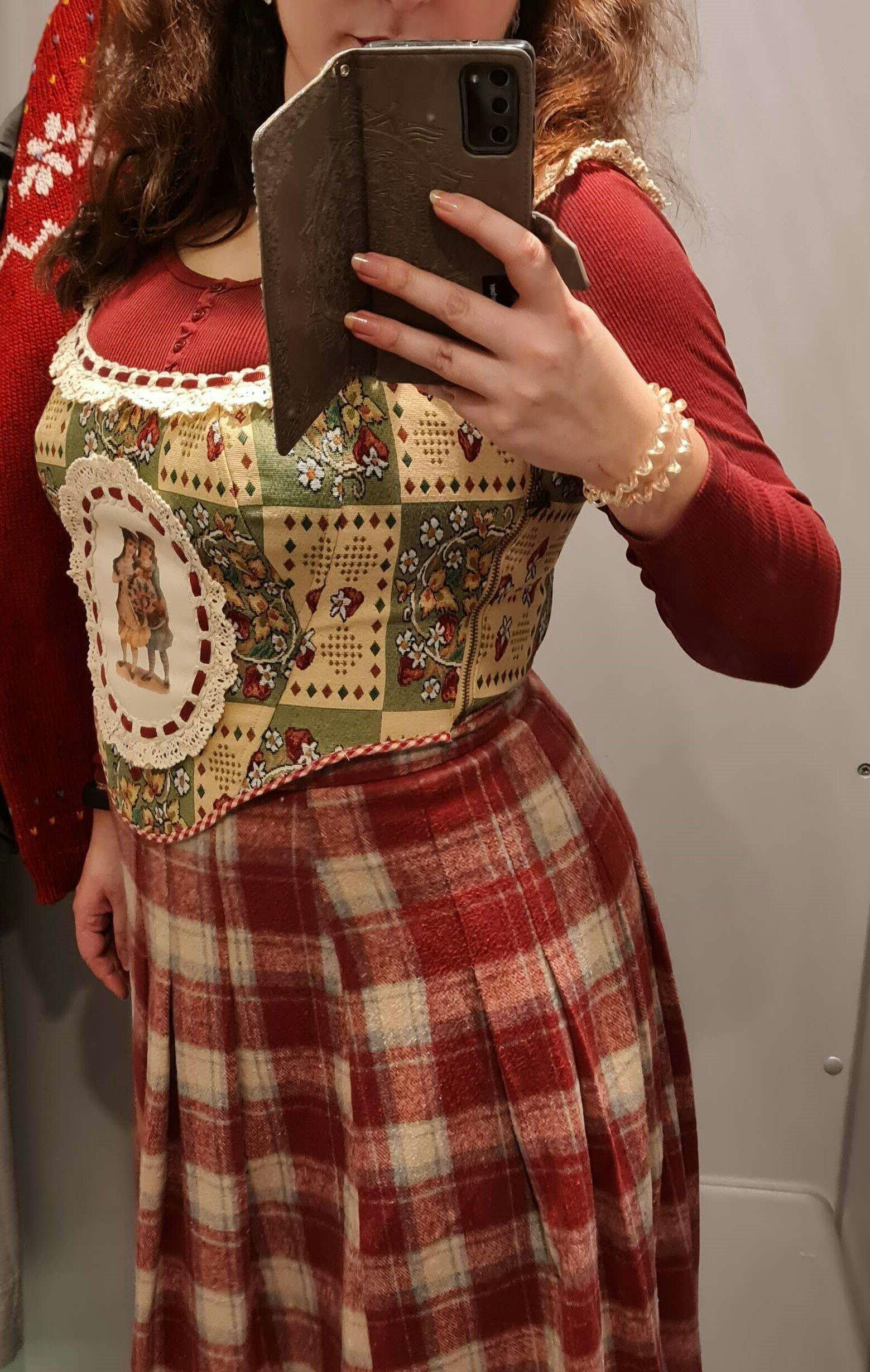 This is another great LM corset, love it! I’m glad I took a double take and got it. The details are gorgeous, as usual so much is more visible to the eye when you receive the item. Even the smallest things like the sparkly gold thread shining in the braids around the red ribbons is so pretty. My only pet peeve is that the zipper is noticeable, Idky any brand- not just LM, doesn’t add just a teeny tiny bit of fabric to fold over the zipper to hide it. This usually stops me from buying corsets.