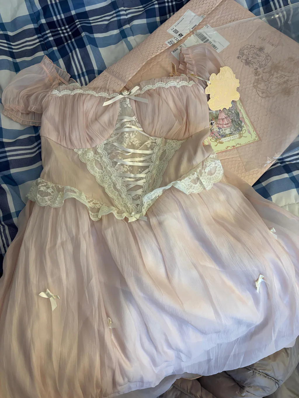 Great quality, beautiful cream lace and a very light dusty pink