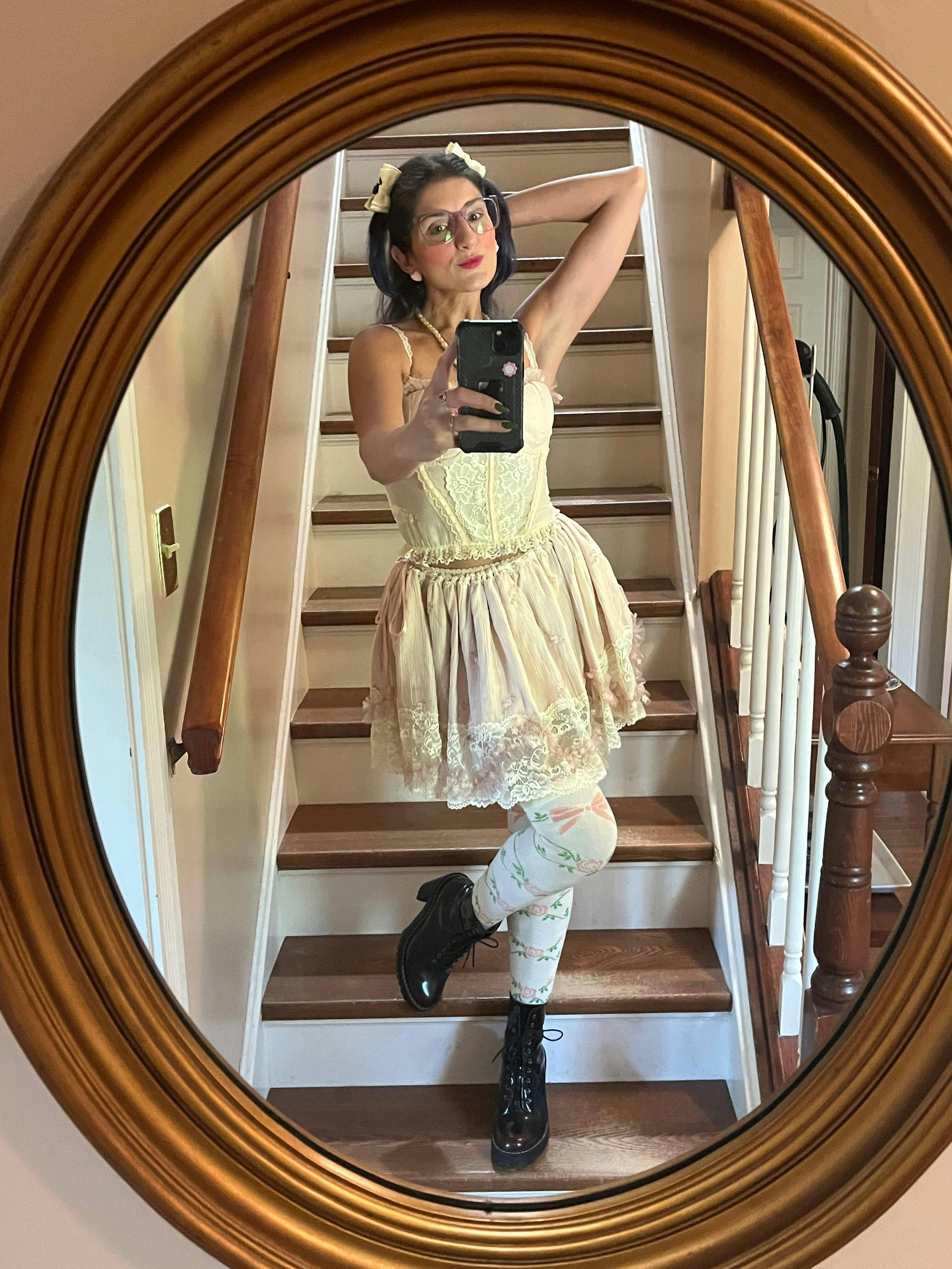 Okay, so I spent the day adventuring with two wonderful friends and we all have our own Aesthetic: this one is MINE!!! (I am 5’3, ~110lb, and I wear a S in both the corset and skirt! I don’t remember my measurements at present…)