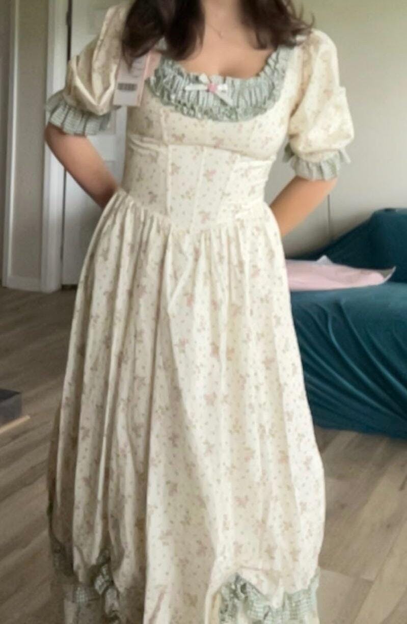 This dress is a must for cottage core girlies. It is also true to size and full length. Very good quality the moment I received it. The material is thick and not see through. The details and lining look very well made