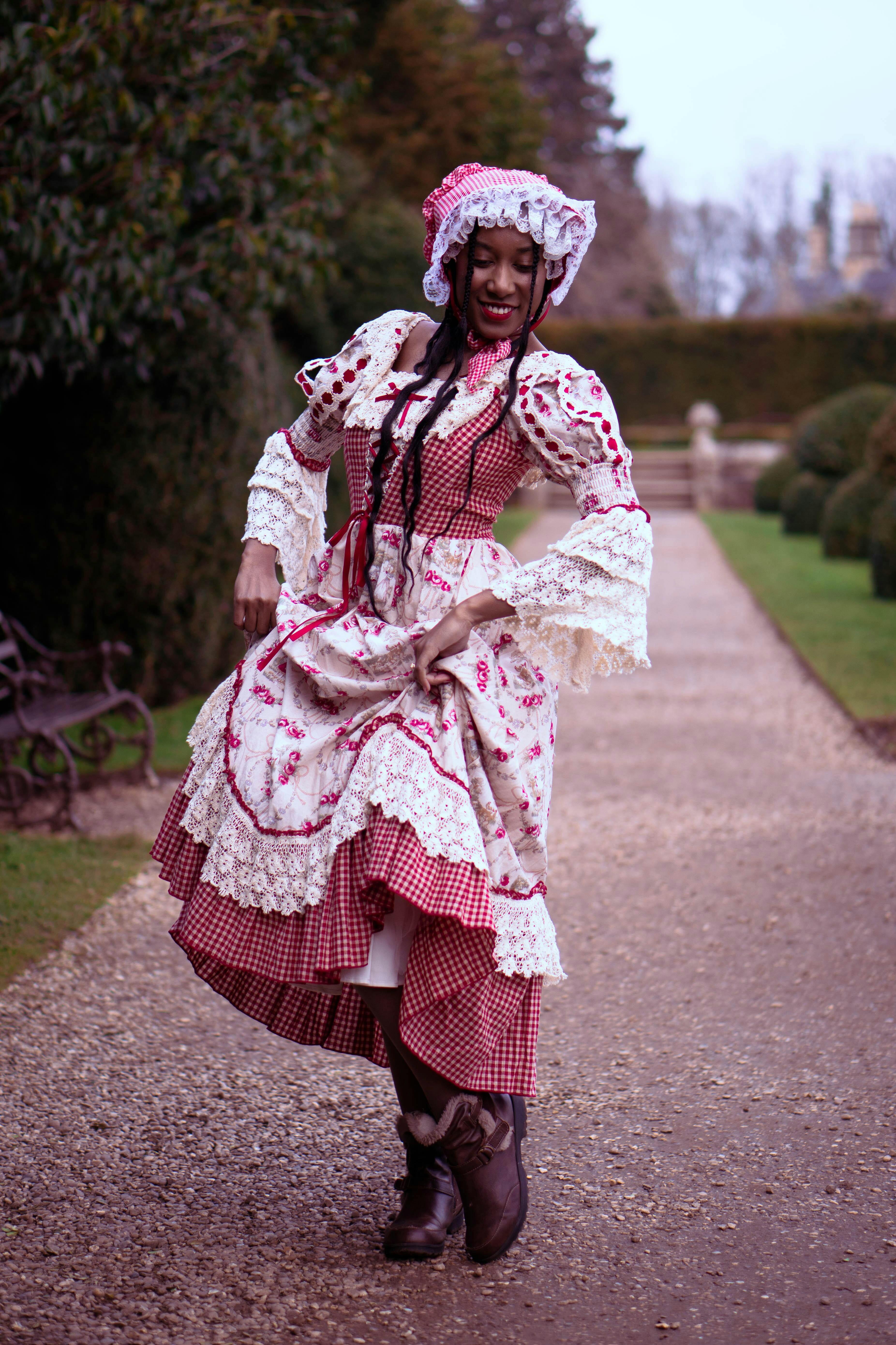 This dress was a must have. When I saw it on the website and my expectations were beyond matched. It’s so intricately made and the material is thick and insulated. The sleeves look soooo renaissance so its not just your typical cottagecore dress. Im between sizes XS and S, and I bought a small. It’s roomy in the waist and bust. Definitely should’ve sized down on this one. The bust isnt very adjustable because if you pull too tight, it makes the bustline look wonky.