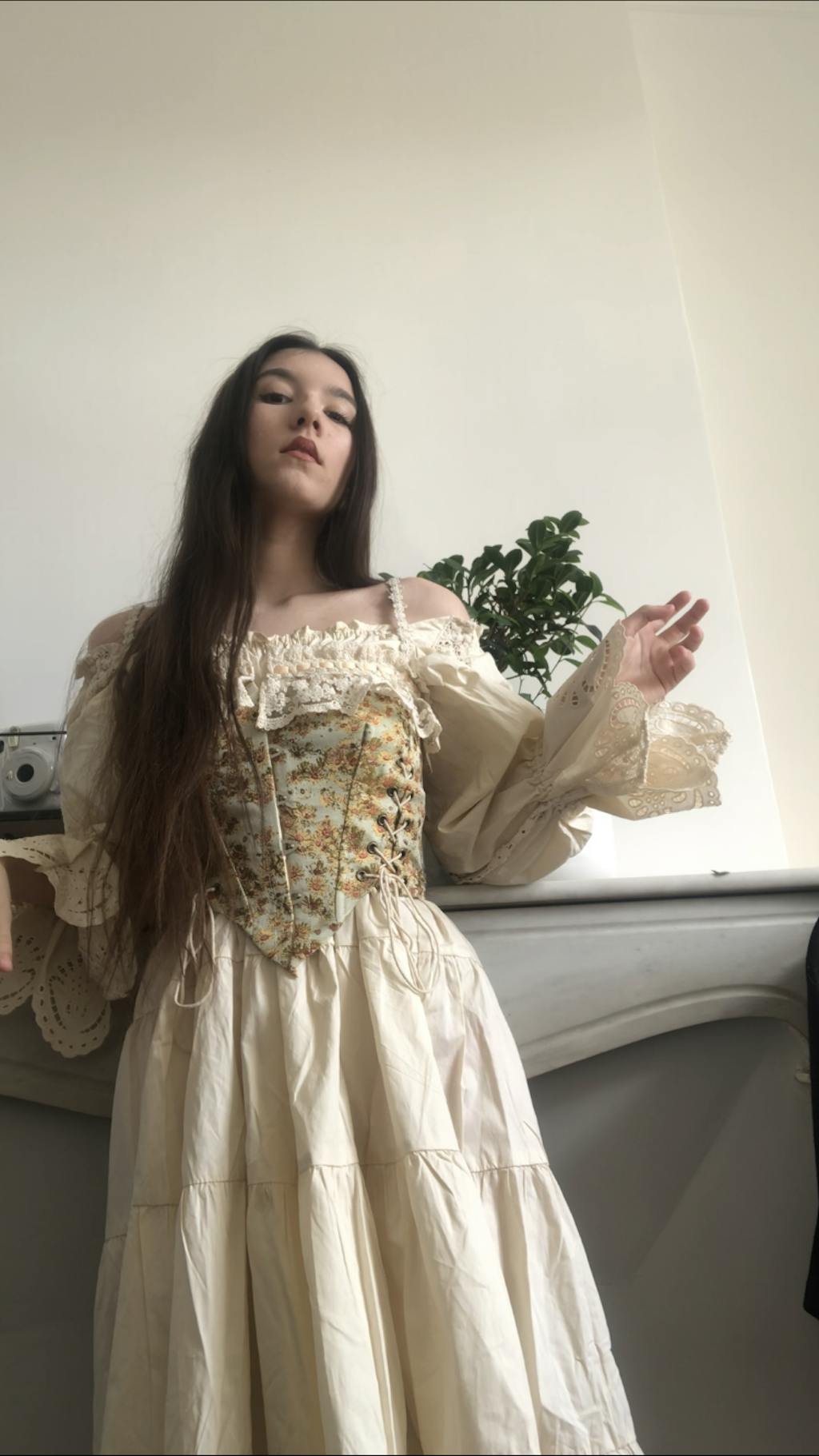 This corset is beautiful and fits nice and tight! I got an XS. The lace on the sides allows you to tighten the corset such that it sucks your waist in and gives you a more hourglass look.