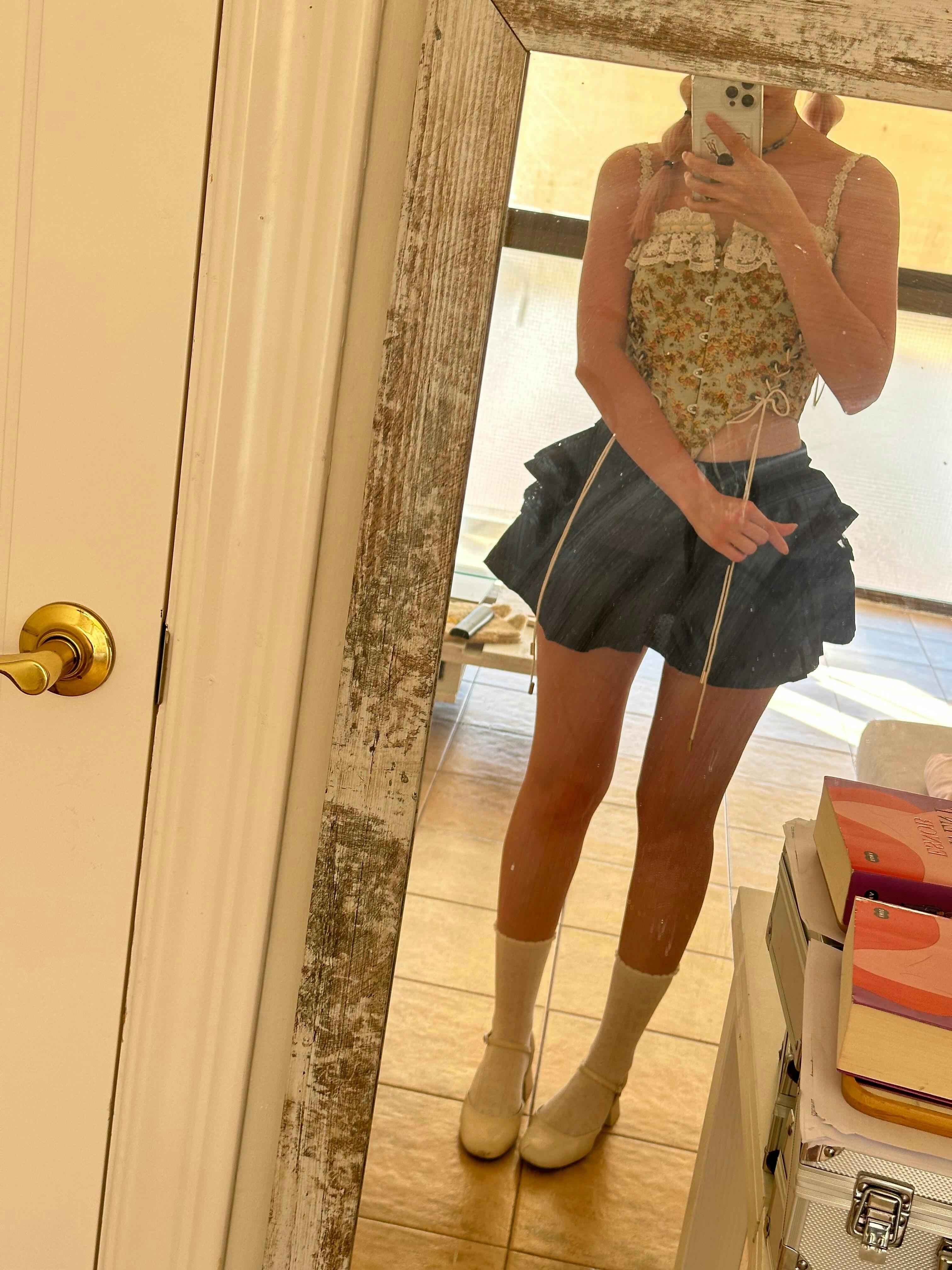 You can see one way I styled it in the picture. Pairing it with a long maxi skirt with a bandana is cute and gives you a sort of old-timey look. I might also recommend getting some high-waisted flair-legged pants if you want something more modern. A good pair I'd recommend on Amazon is called "Tronjori Women High Waist Casual Wide Leg Long Palazzo Pants Trousers Regular Size."
