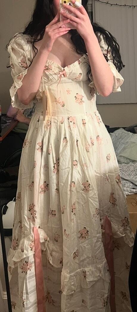 Beautiful, flattering, comfortable and made of cotton, a perfect cottage core dress. I am really pleased with it!