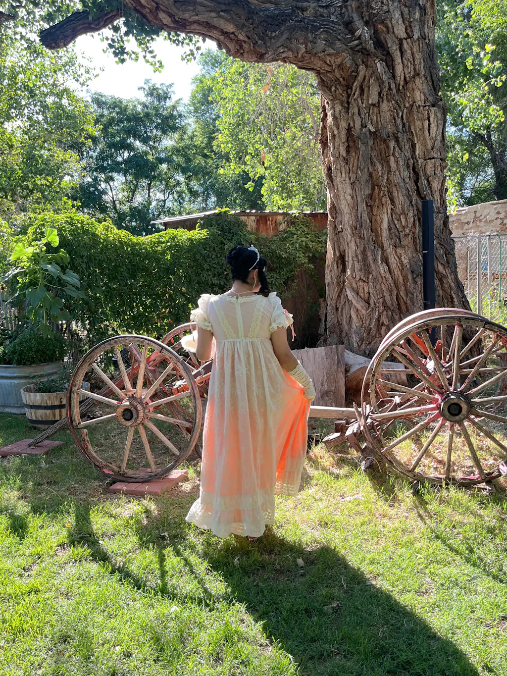 This dress is so beautiful and the details make it so much more elegant. I ordered a L because I was worried about the bust being too small and the large fit perfect. This dress is to be dry cleaned and requires maintenance. I wore this garment to a bridgerton soirée & felt so lovely!! I’d recommend checking the size chart for the correct size.