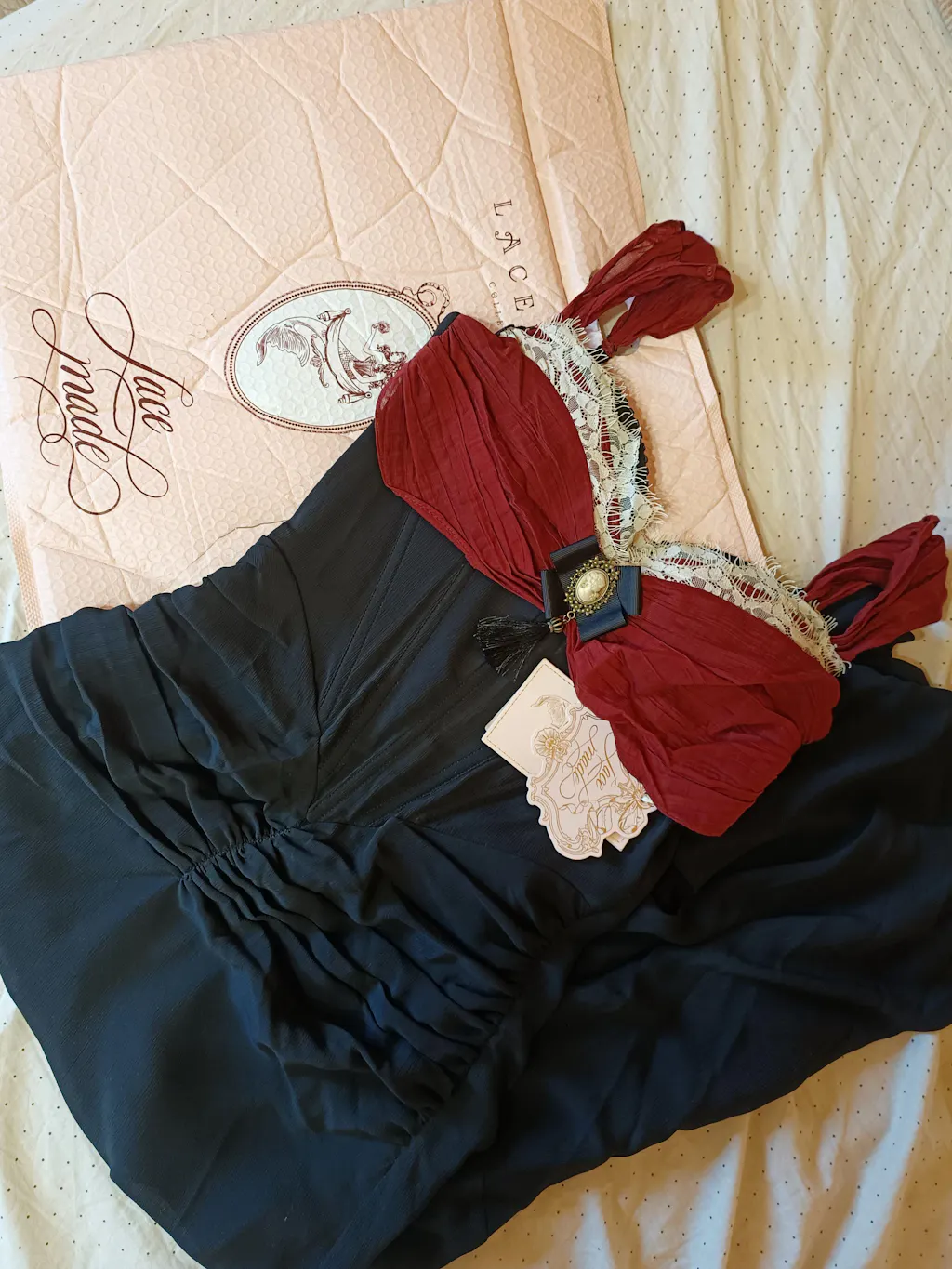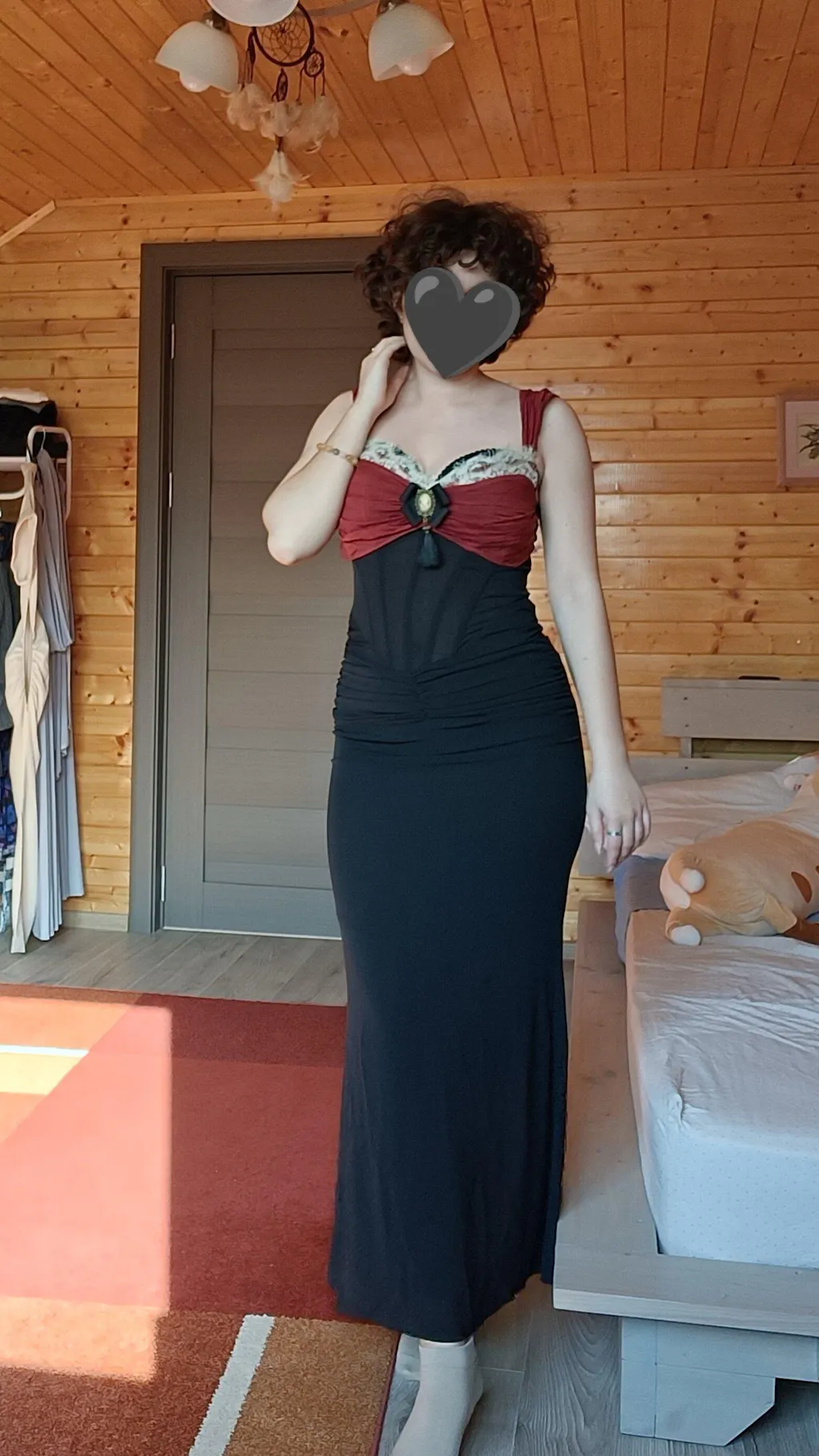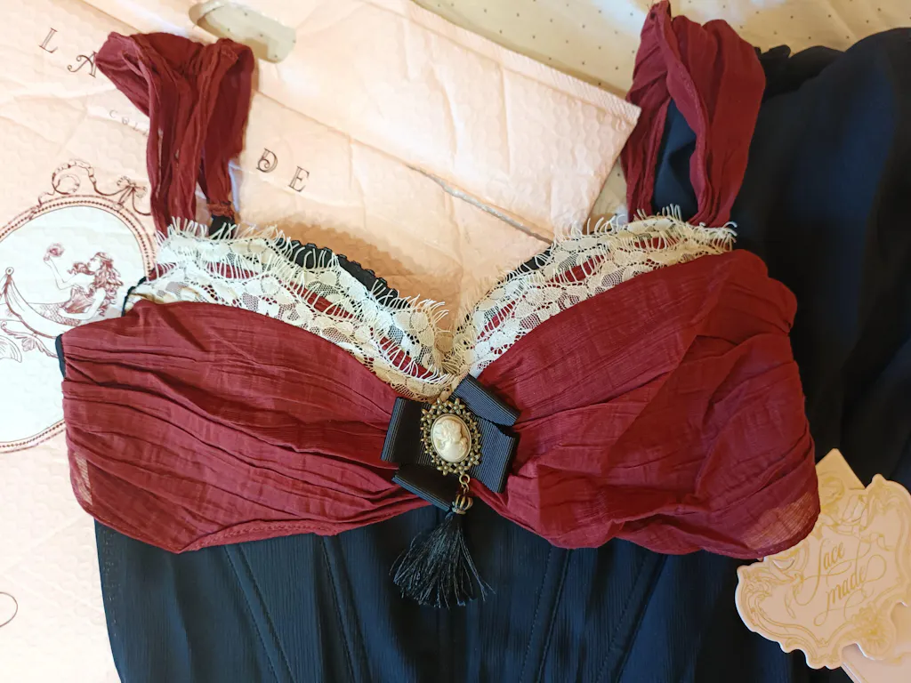 It’s exactly what I wanted! The color is a very dark blue, almost black, and I love how it combines with the red. The sizing matches the chart perfectly. I was a little worried because I have wider hips, but the dress fits really nicely. It’s tight, but still elastic. It’s gorgeous — I love it!! 🖤
