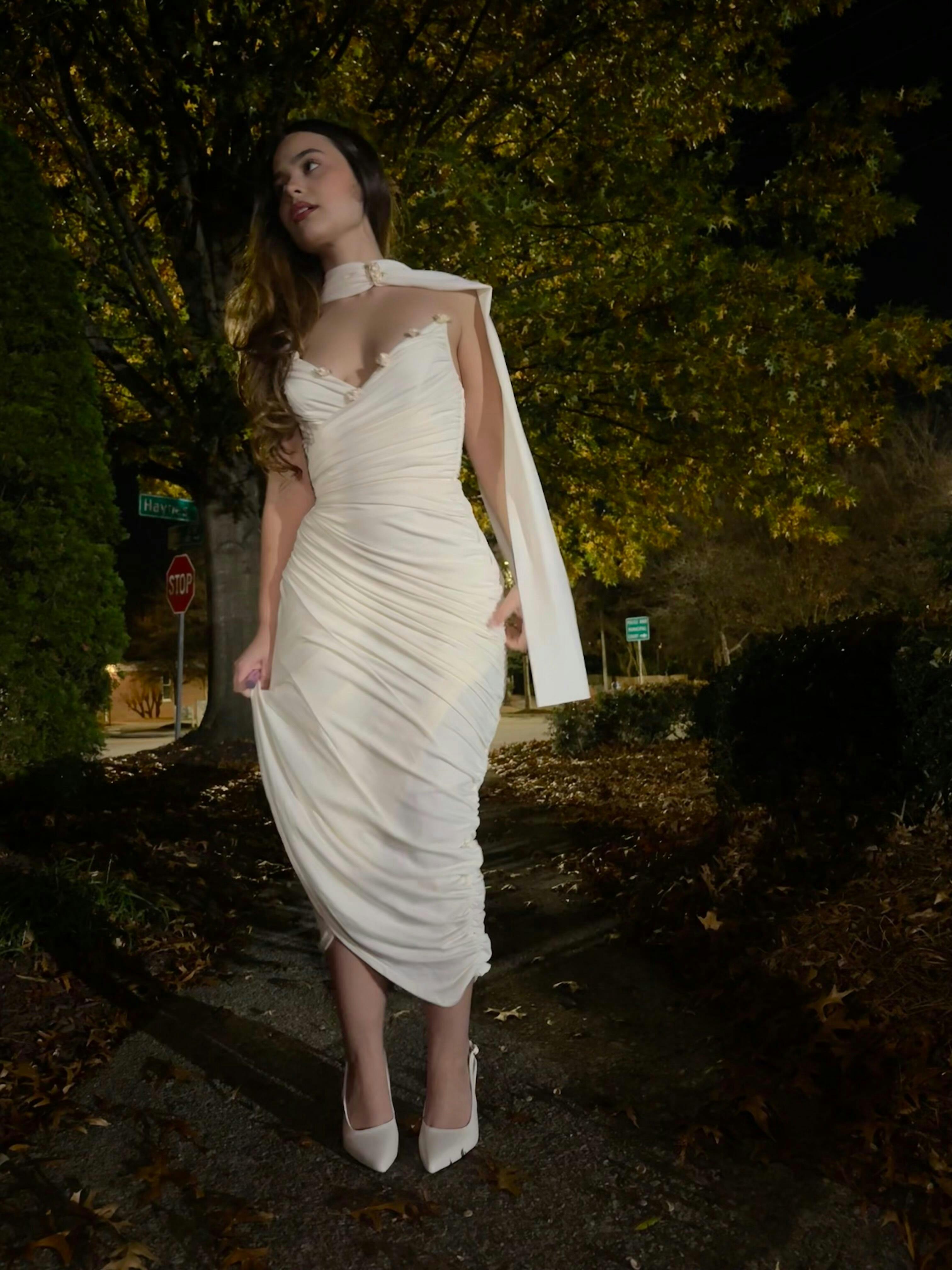 looks EXACTLY like the picture!!! very tight fitting especially at the top, doesn’t reach the floor but it’s still very classy. if you have a curvier body, don’t worry because so do i and it worked perfectly!! the top is tight like a corset and pushes boobs creating a really good cleavage!
