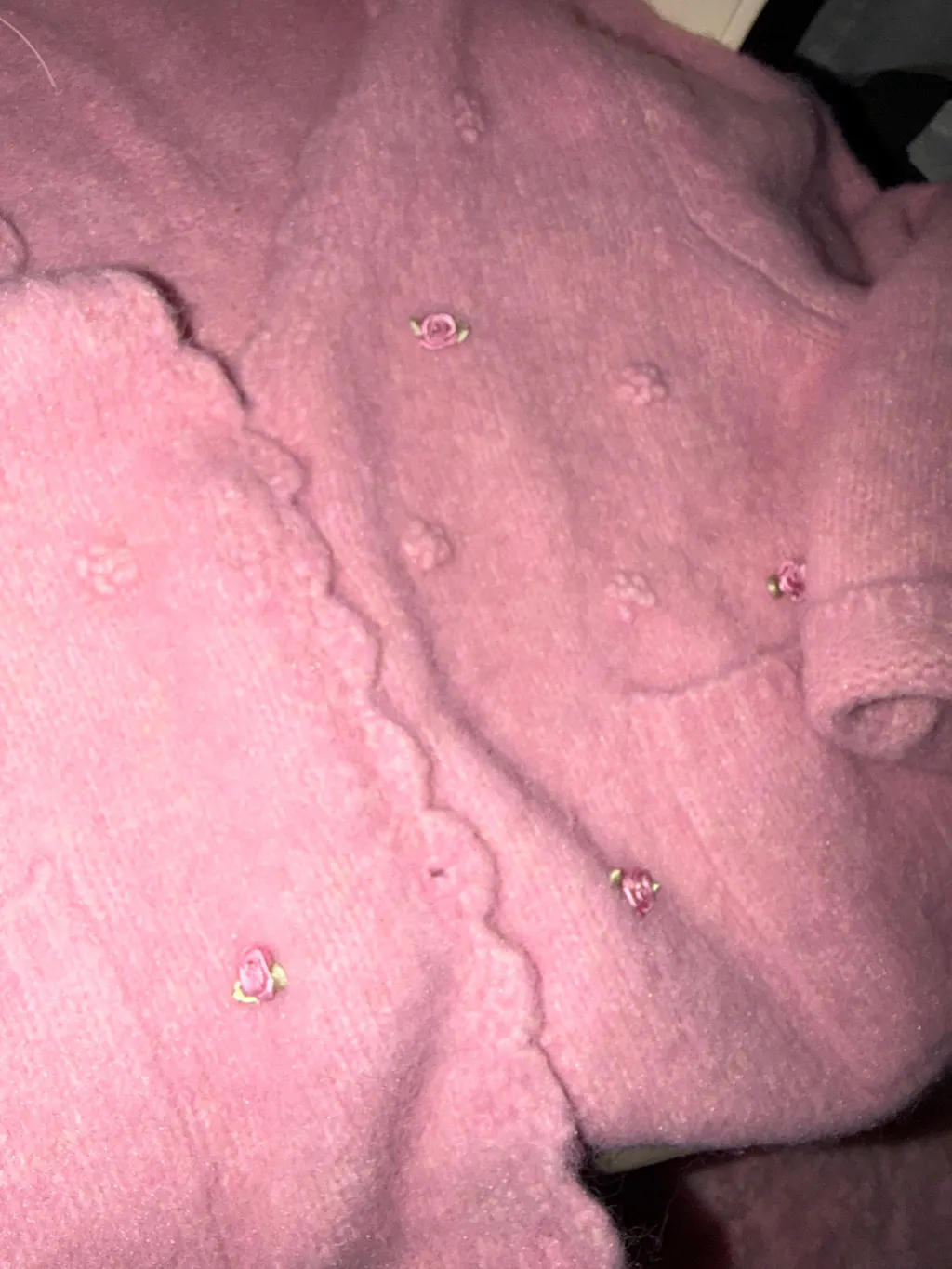 This is the softest sweater & maybe the coziest one I own. Gorgeous color, soft texture & beautiful accents of dainty roses. If I could live in this everyday for eternity then that will surely be heaven🩷