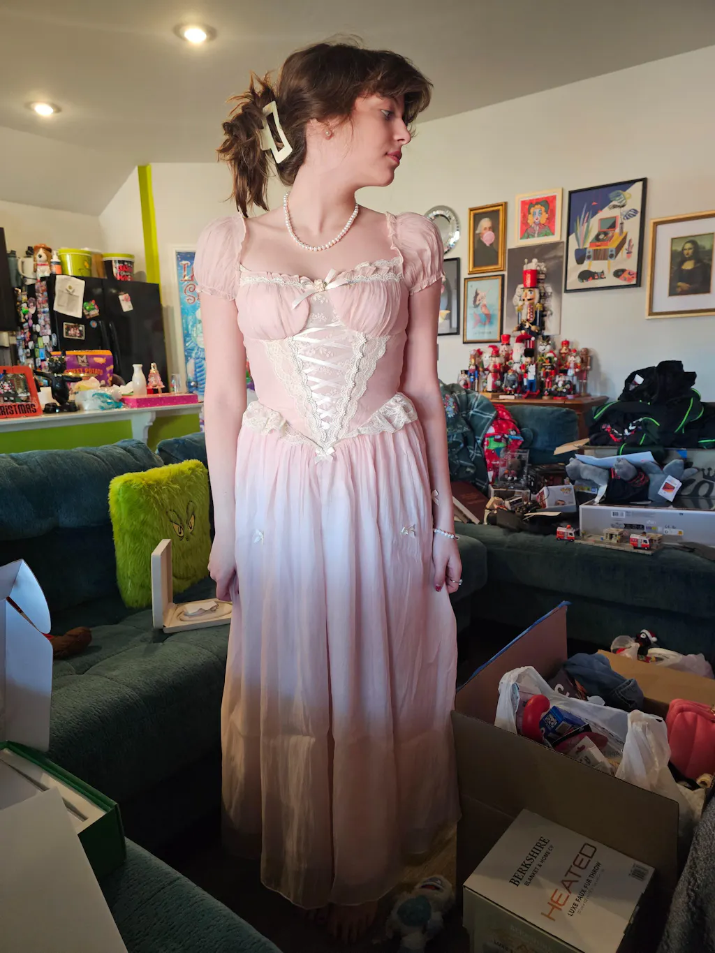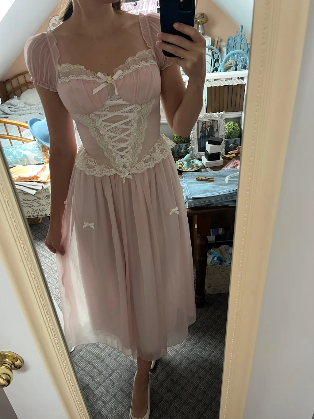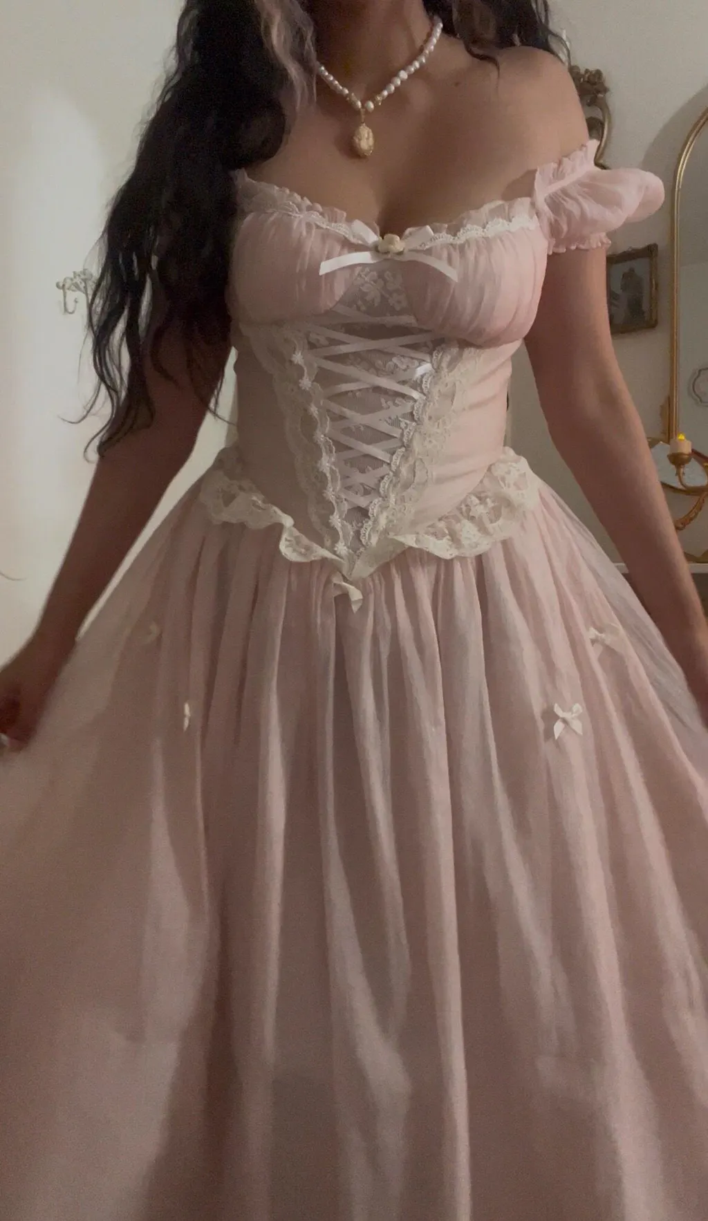 I’m in love with this dress, it’s so princessy. Do keep in mind, there isn’t much stretch or adjustment for this dress so get the right size! I’m a large. 34D,29inch waist and 5’4.5, it fit just right for me! The sleeve elastic is a little itchy for me, but not unbearable