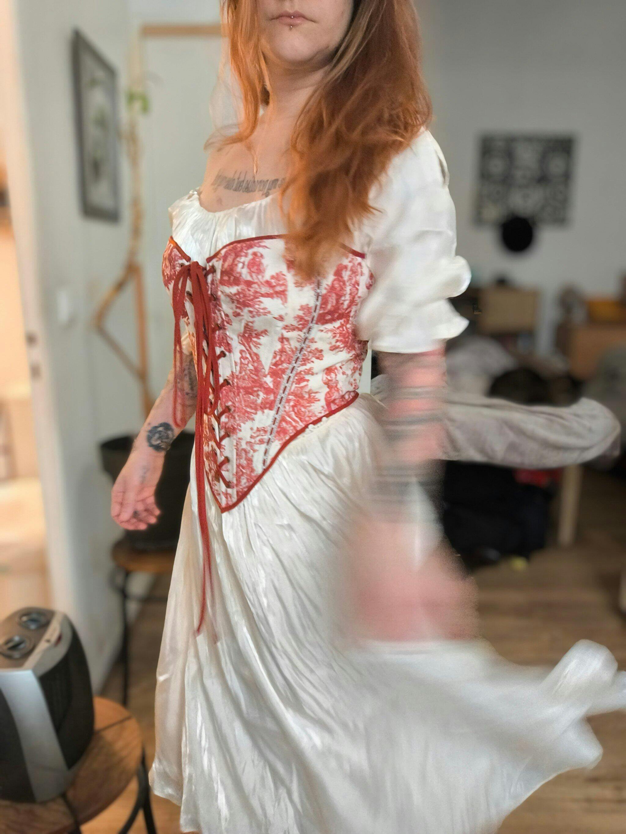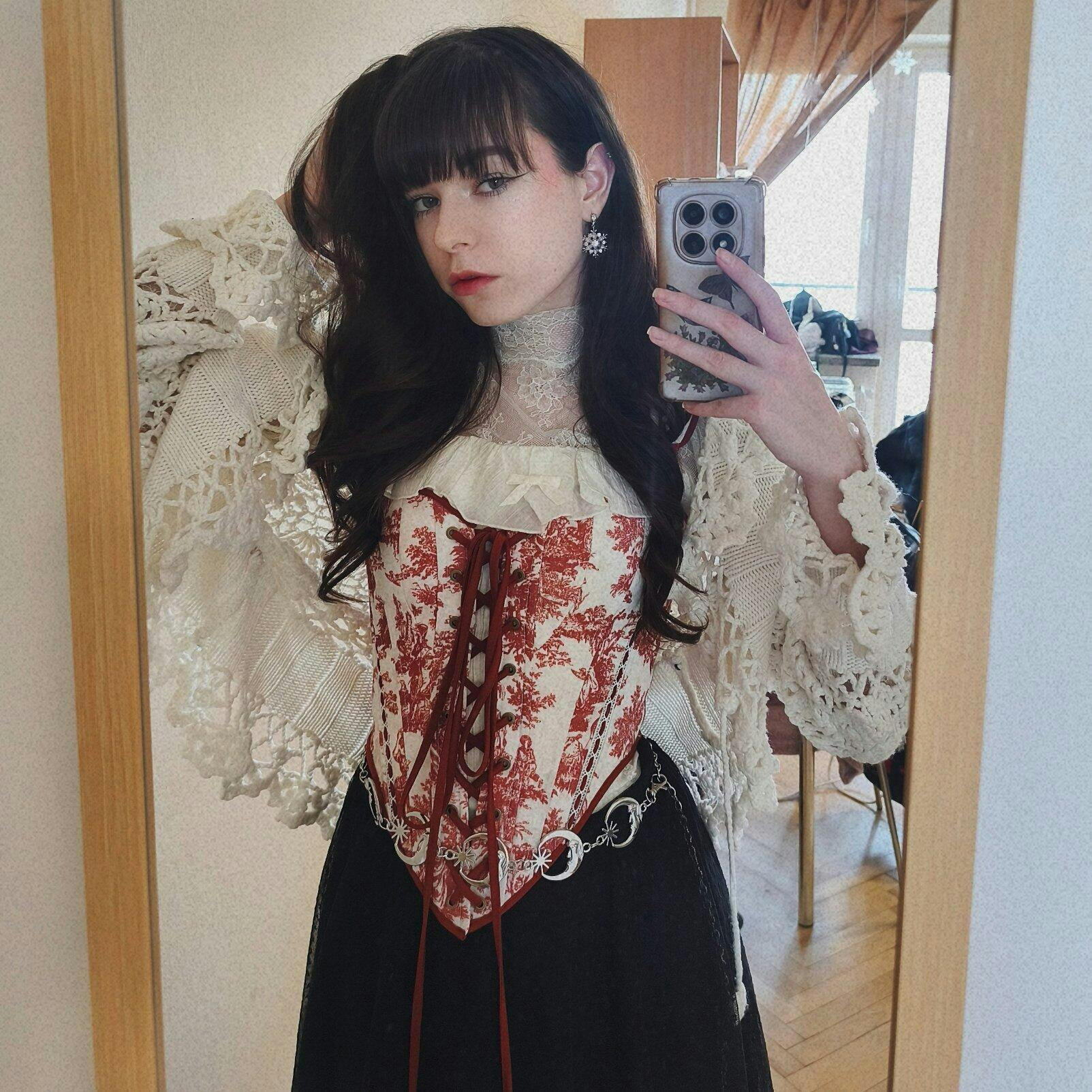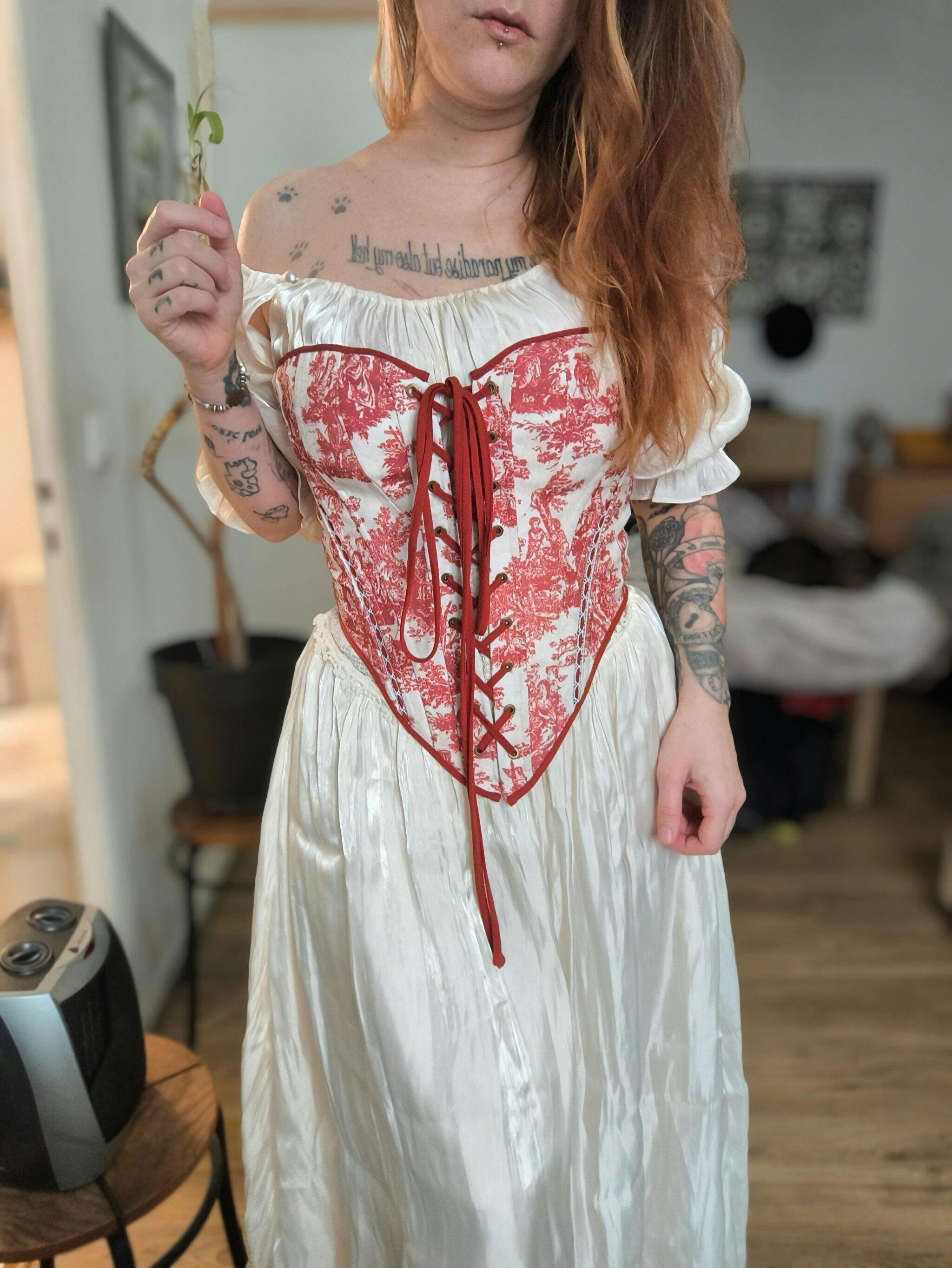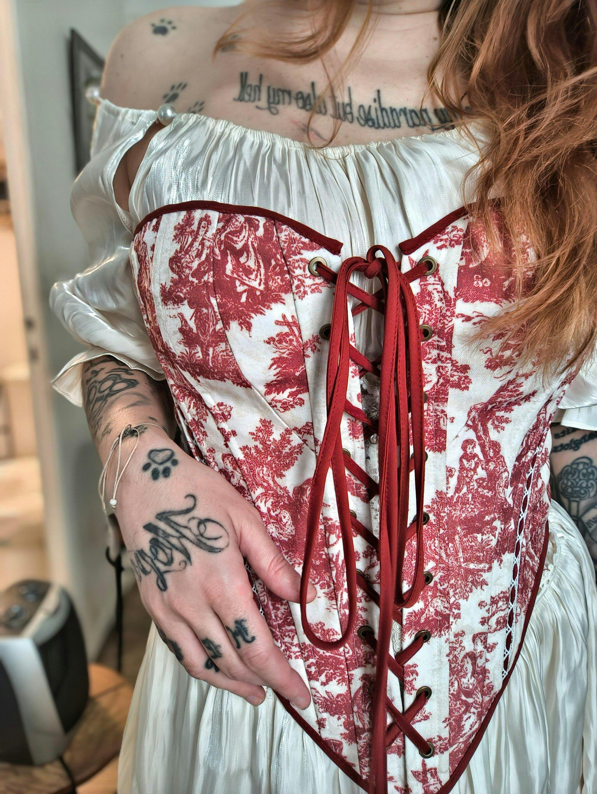 Vraiment un très jolie corset qui peu autant allez a une fille qui fait du m que du L que du xl grâce au fait qu'il soit ajustable . Vraiment mignon . Et il va parfaitement avec la robe que j'ai achetée