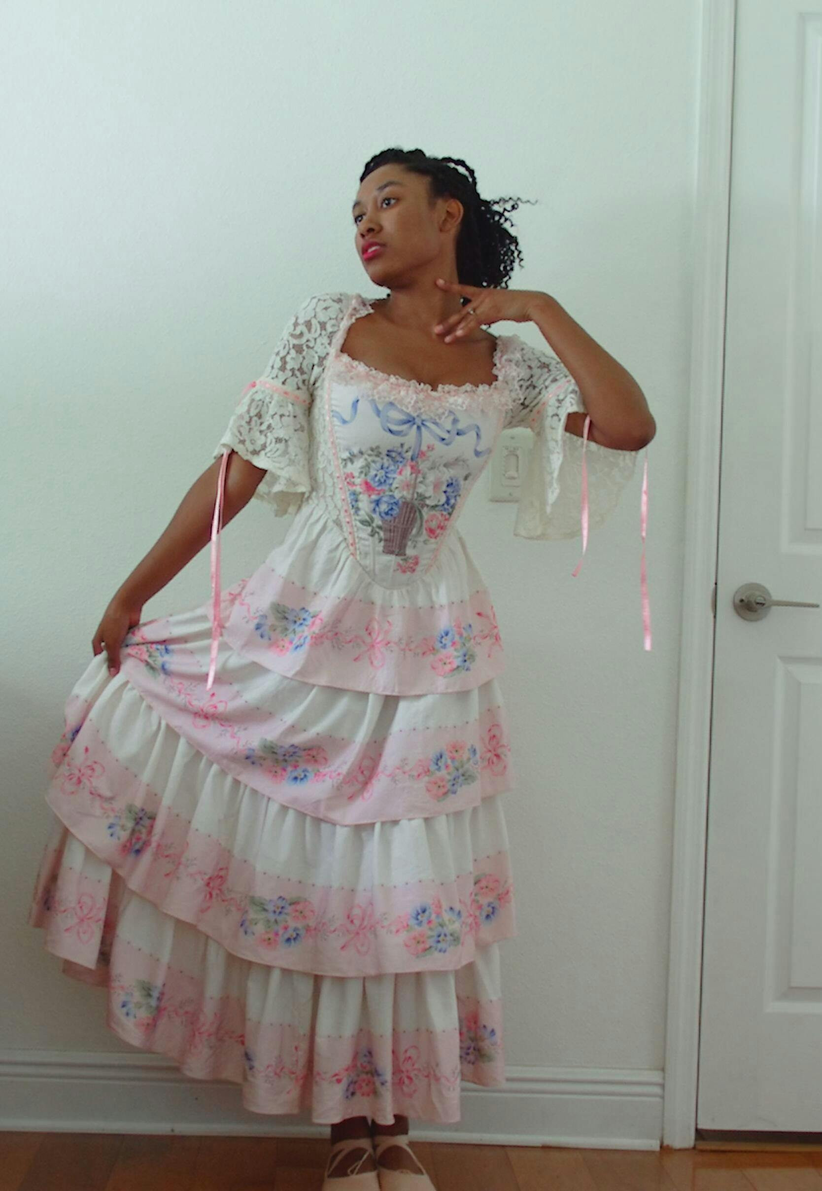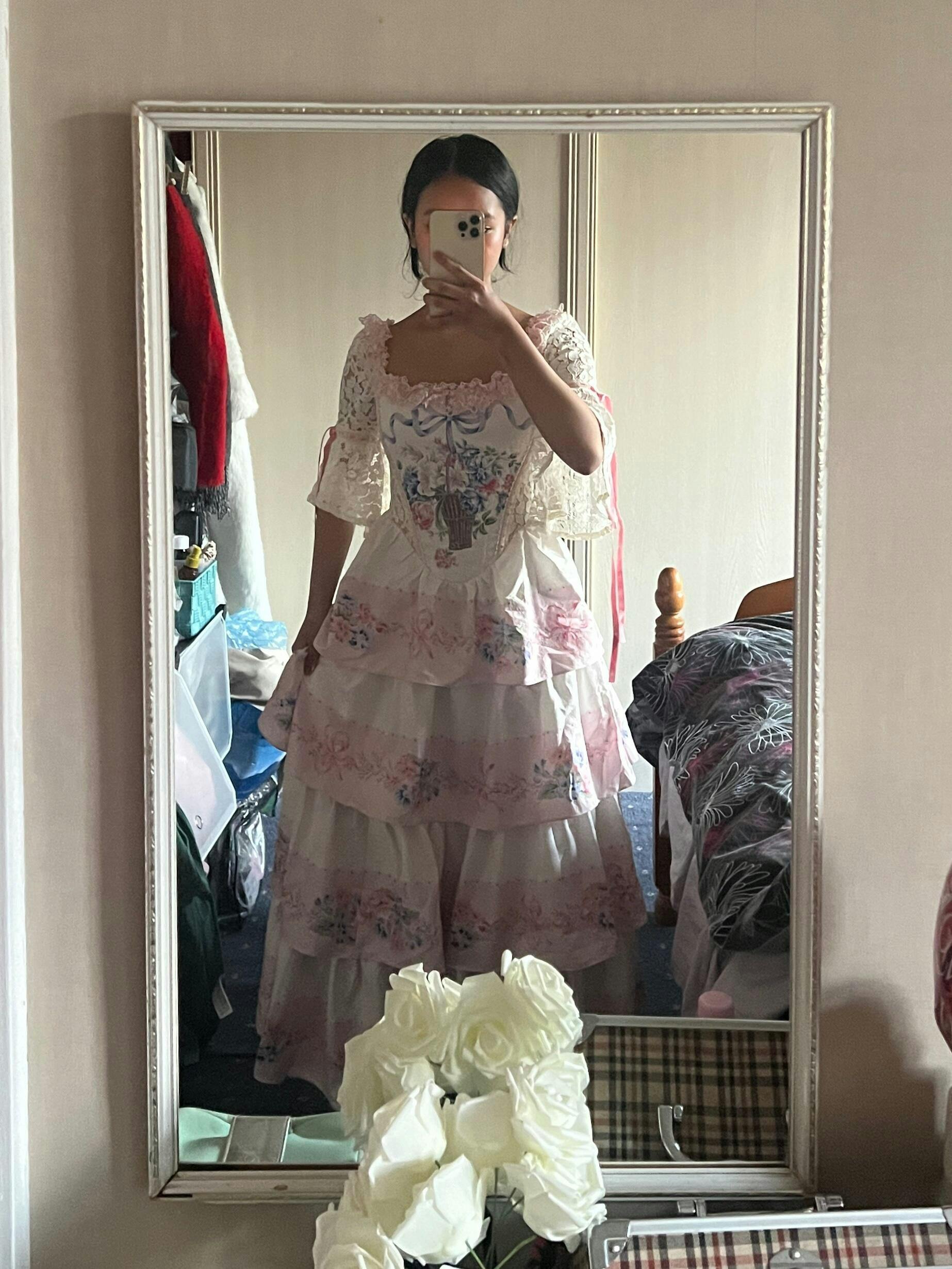 size down on this one! I’m usually between sizes XS and S for lace made. I bought the identical corset in small and noticed how loose it was everywhere so I made sure to size down in the dress. It’s still roomy even though it’s an XS. My bust, weight, hip measurements are 34”, 25”, 37”. The dress has an awkward side zipper so it’s diffuclt to get on me like most LM dresses. Otherwise it’s beautiful. Just wish it was cotton though…