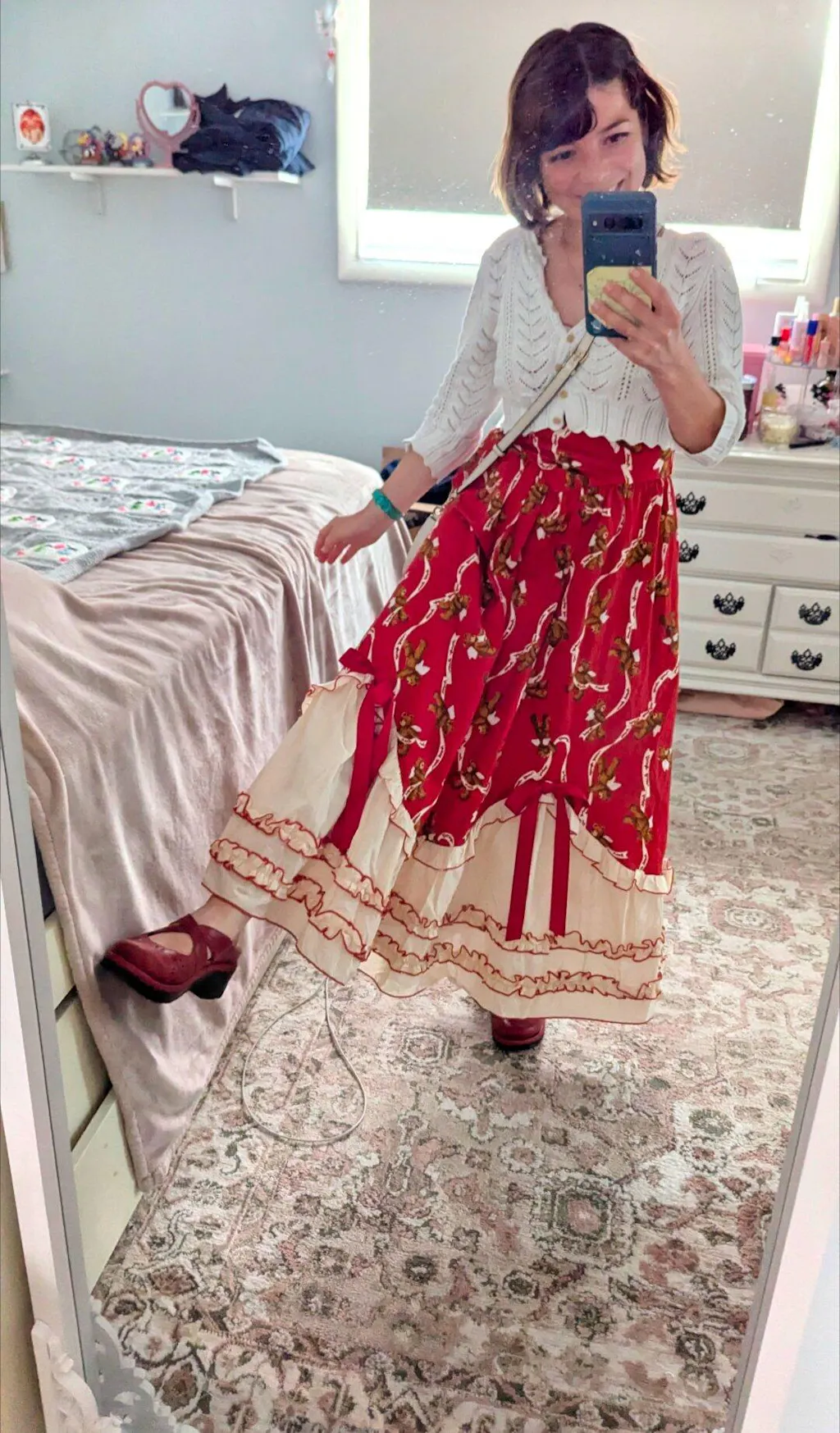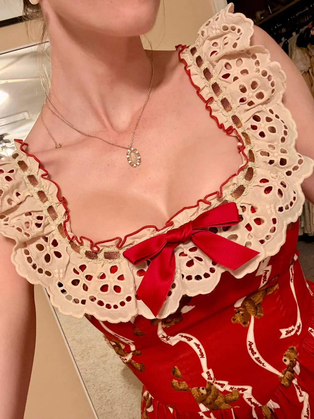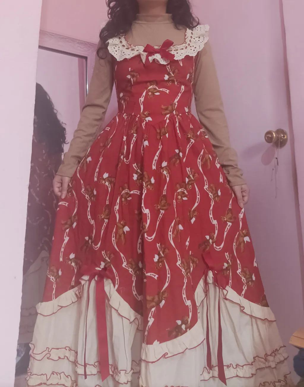 This dress is so beautiful and I feel like a princess wearing it! πŸ‘‘ Although at first the dress came with a broken zipper, they sent me a new dress and the second dress is in perfect condition and the zipper works perfectly too. πŸ₯Ή The little bears with angel wings on the dress is my favorite part and I feel so whimsical wearing this lovely dress 🧸πŸͺ½