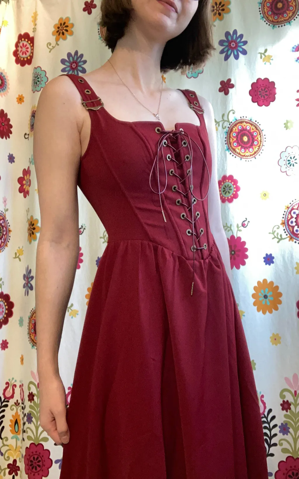 Bought this dress with the matching blouse and WOW they're a match made in Heaven! it's a pretty set for that winter medieval vibes. It's true to size, I just wished the fabric seemed less low quality and plastic