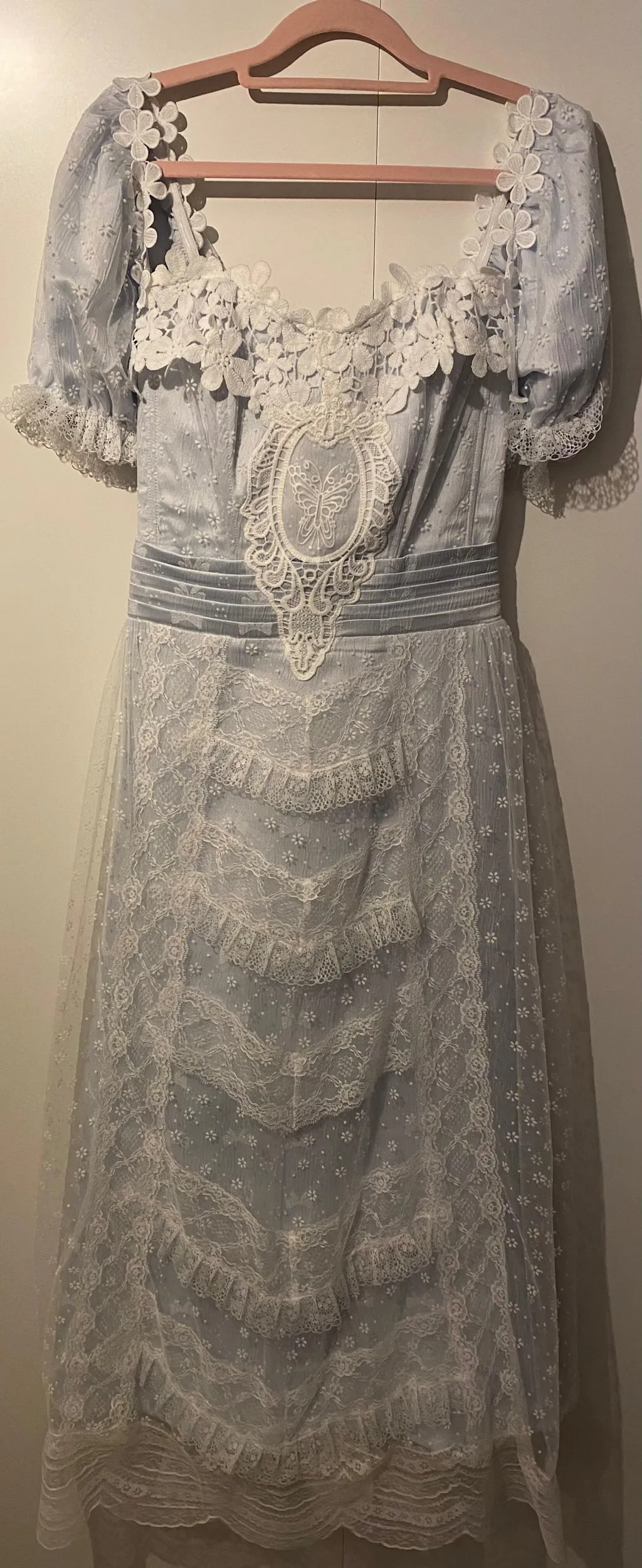 I got this dress to match my daughter’s Cinderella dress because at the time they didn’t have a bigger size because I couldn’t fit the extra large due to my chest size for an added note. I am 4 foot 11, 36 double D. And 155 pounds but this dress fits like a glove and it is so stunning it’s absolutely beautiful. I can’t wait to post pictures of it on. It’s so well-made and it goes great with my toddlers Cinderella dress it’s not perfectly matching, but it does match so if you’re looking for an alternative, this one is a great one, but it’s a beautiful dress in itself it is absolutely stunning and I’m absolutely pleased with the length me being a short lady the length is perfect.