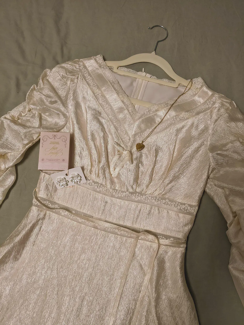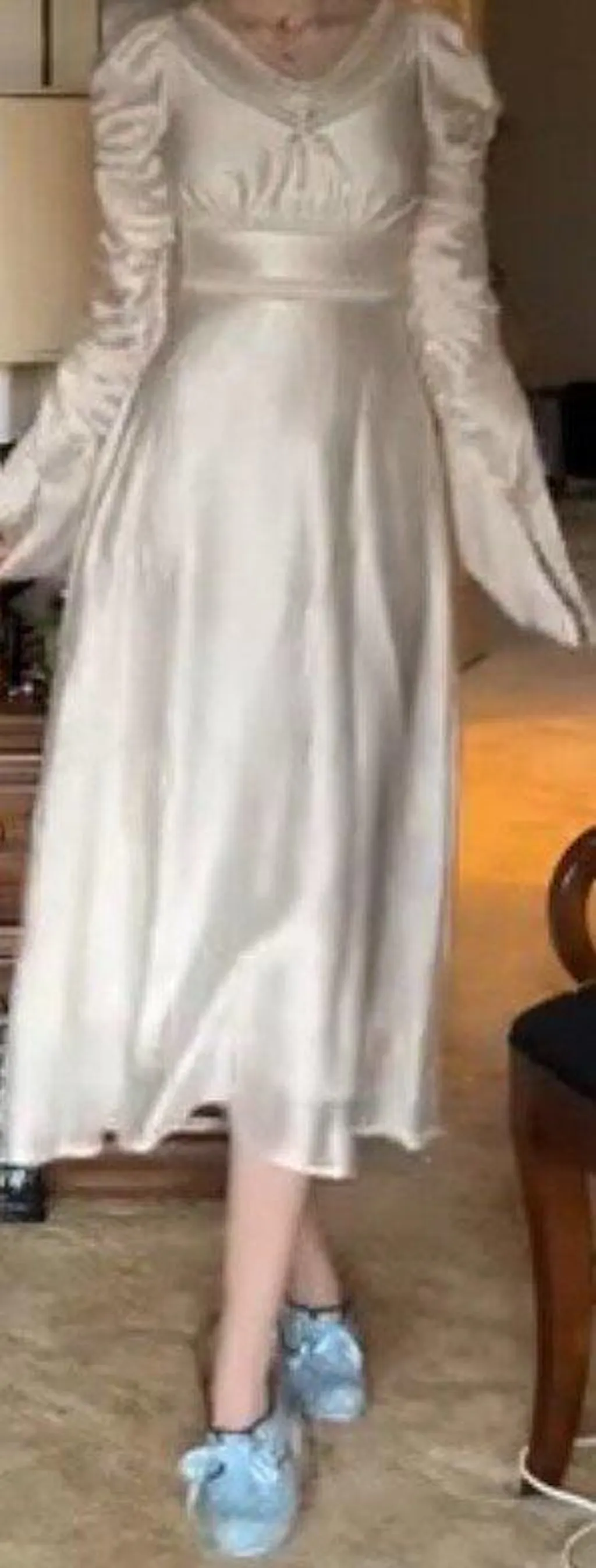 I fell in love with this dress immediately. The fabric is lightweight and soft, even if a little see-through. The design is so dreaming and ethereal, really one of a kind. The dress fits right as listed and it's perfect to pair with LaceMade jewelry pieces. I can't stop recommending it!