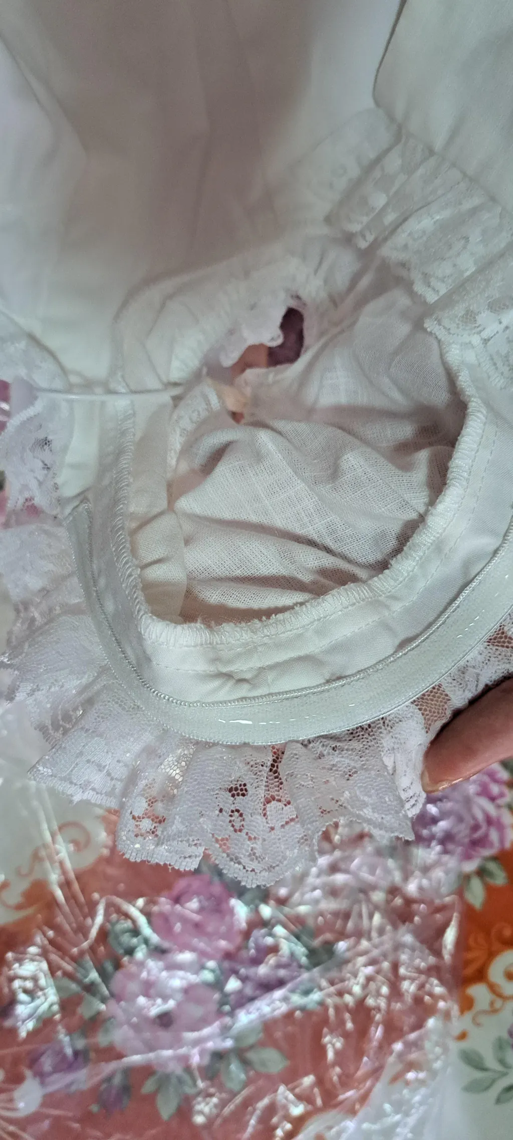 The fabric is amazing. The shell is soft, breathable 100% cotton, and the lining is smooth 100% polyester, making it comfortable and drapey. The lace-trimmed square neckline, puff sleeves, and little covered buttons are all gorgeous and give such classic Cinderella vibes.