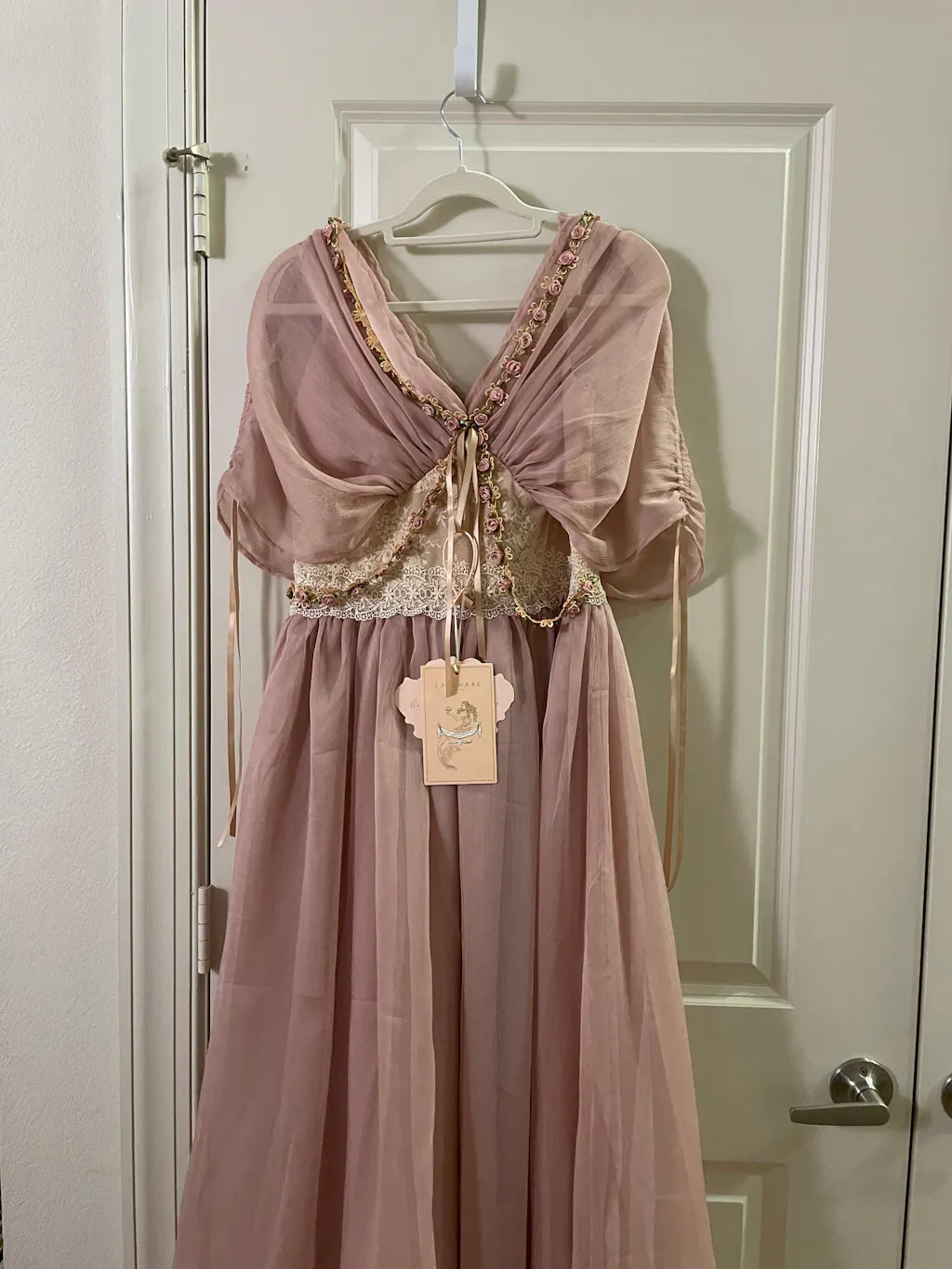 Beautiful, classy dress. The photos don’t show it, but the undergarment includes an adjustable shoulder strap, which is a great feature. The waist has minimal stretch, so I’m glad I followed the size chart.